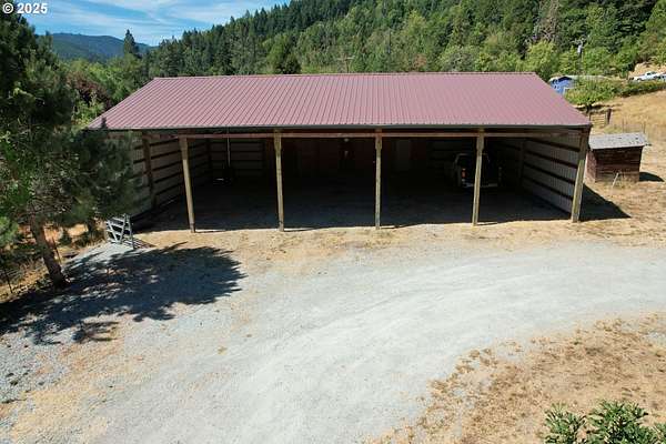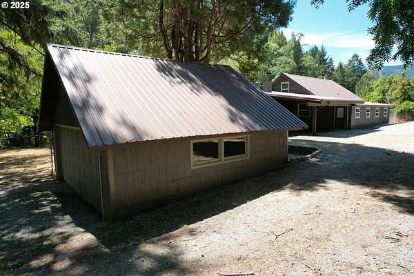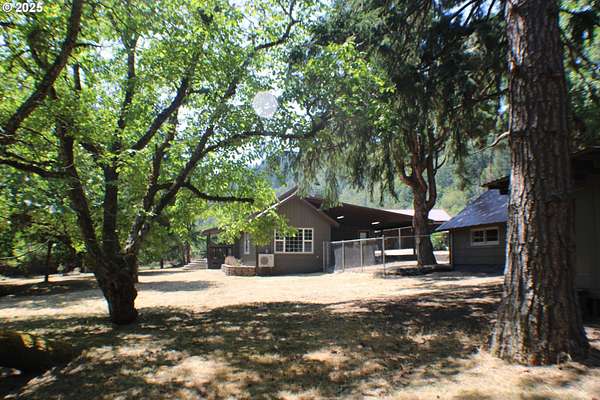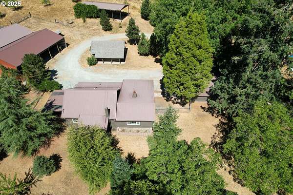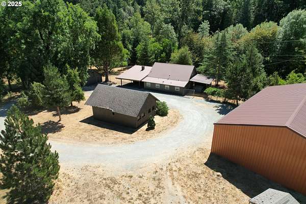 Welcome to your dream country retreat where timeless charm meets modern luxury, this stunningly remodeled country estate offers the perfect blend of comfort, functionality, and natural beauty. Set on just over 3 flat, fully usable acres behind a secure gated entry, this property delivers exceptional privacy, seclusion, and breathtaking panoramic mountain views-plus creek frontage for a serene, picturesque setting. Inside, tasteful updates preserve the home's original character while elevating everyday living. The main floor features a primary suite with a luxurious bathroom, offering a peaceful escape at the end of the day. The beautifully renovated kitchen boasts recessed lighting, ample cabinetry, and a seamless layout for both everyday meals and entertaining. Step down into the inviting living room, where log beams and a striking rock fireplace create a warm and rustic ambiance-perfect for cozy evenings with loved ones. Step outside to explore everything this incredible property has to offer: detached 2-car garage, HUGE shop for all your projects and storage needs, hay barn, pole barn, chicken coop, and tool shed-ideal for hobby farming or full-scale homesteading The land is fenced and flat, making it perfect for livestock, pets, gardening, or simply enjoying the expansive open space. After a day of country living, unwind in the covered hot tub area while soaking in the tranquil sounds of nature. Whether you're looking for a private retreat, a working homestead, or the best of both worlds, this remarkable property delivers it all.