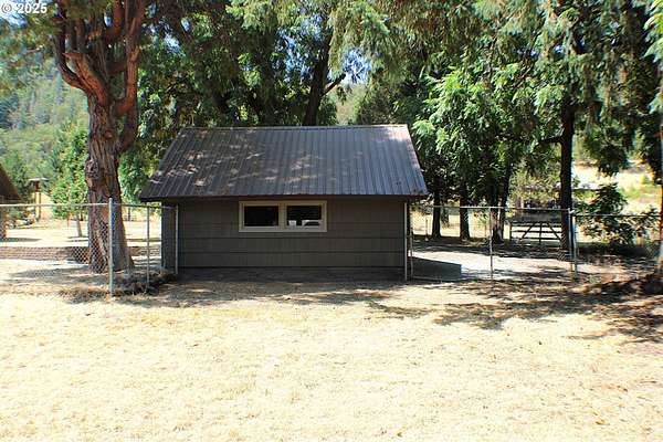 I-5 Exit 103, W to Riddle Bypass Rd, L Main St, R Shoestring Rd