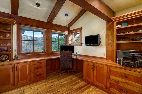 This spectacular home in Alpine Mountain Ranch began with classic mountain Timber Frame construction where the beauty of the craftsmanship and exposed beams are a natural companion to this Rocky Mountain setting. The exceptional quality begins with radio frequency kiln dried Douglas Fir timbers and true mortise and tenon joinery. As you enter the home, the great room lies before you, drawing you in with its superb views of the valley and Sand Mountain. Aesthetically, the home is beautifully appointed incorporating Hickory floors, a combination of Alder and Cherry cabinets, doors and trim, leathered granite counters and Telluride stone. The floor plan is well thought out with a main level primary suite, vaulted ceilings with fireplace, dual closets, and a private patio with Flat Tops views. Upstairs you'll find 3 secondary bedrooms with ensuite baths, caretaker unit with private exterior entrance yet adjoining the upper level, private office, bonus room, and loft seating plus library alcove. The spacious gourmet kitchen offers the highest quality appliances with lots of workspace and storage plus a walk-in pantry. The rec room downstairs promises fun for all with theater room, game area, golf simulator room, full bar, cozy seating by the fireplace, and a very "safe" wine cellar for your most prized vintages. Summer is spent outside, and these amazing outdoor spaces include a covered and heated dining area, outdoor kitchen and fireplace plus a patio off the rec room with a fire pit and built-in hot tub adjacent to the tumbling water feature. The mud room is huge and the project room off the kitchen can host crafty kids and adults. Other notable features include A/C, central vac, snow melt system, central sound, Crestron integrated electronics, and so much more. A 3-car attached garage contains 2 large gear rooms, with ski racks, boot dryer, and dog washing station. Around the back is yet another 2-bay oversized garage/workshop, perfect for toys, tools and equipment.