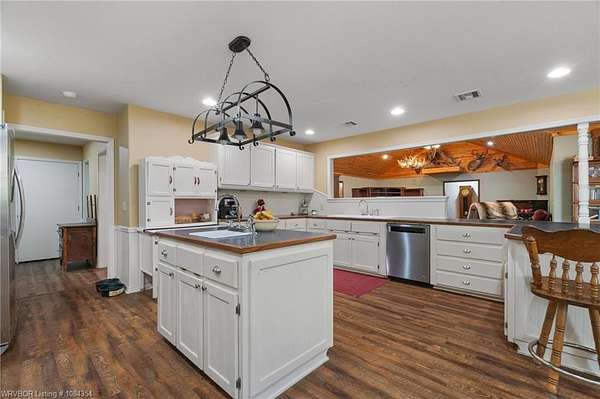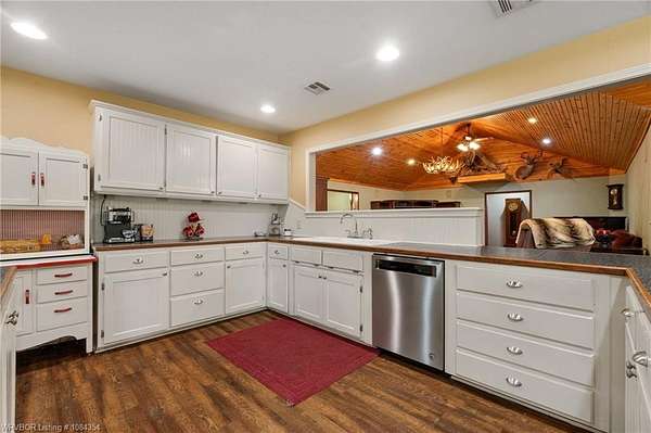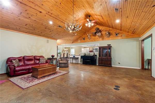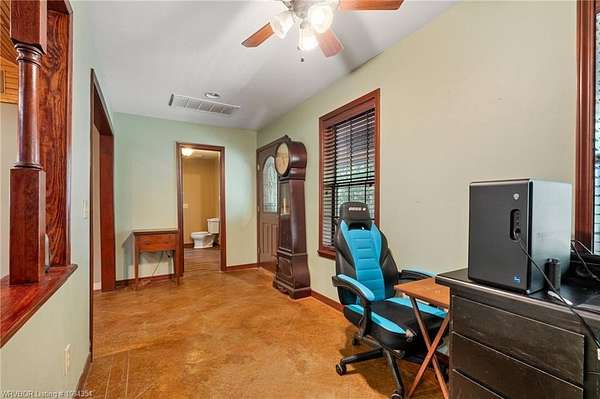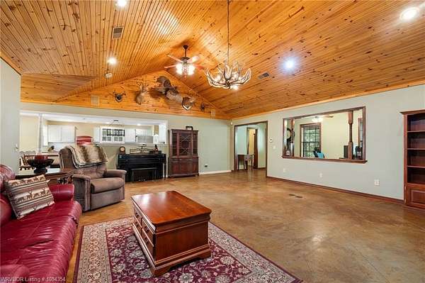 Tucked away on 8 partially wooded acres, this 3,432 sq ft home offers the perfect blend of privacy, charm, and convenience. Located just outside Poteau city limits, this well designed home features 3 spacious bedrooms and 2.5 bathrooms with the master having his/hers walk-in closets. The inviting living room boasts soaring ceilings and a beautiful built-in for your entertainment needs, while the large eat-in kitchen includes a unique range perfect for cooking and entertaining family and guests. Enjoy peaceful mornings and relaxing evenings on the lovely wraparound porch, ideal for taking in the natural surroundings. A breezeway connects the home to a two-car garage, adding both function and charm. Just beyond, a man cave or hobby space offers the perfect spot relaxation, creative projects, or entertaining. Whether you're seeking space to grow, room to host, or a peaceful retreat, this property offers comfort, character, and countless possibilities. All in a beautiful setting just minutes from town.