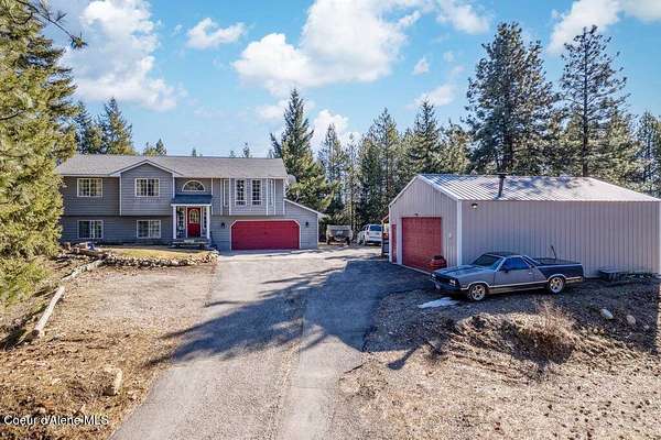 Est $3,945/moFidelity One-Year Home Warranty Included! Tucked away in North Idaho, this private 10-acre retreat blends seclusion and adventure. The 4-bed, 3-bath home features a walk-out lower level, newer appliances, on-demand hot water, dual primary suites, and a cozy family room-ideal for hosting or multi-generational living. Outside, bring your bikes and toys to enjoy the trails and full horse setup. The property also includes an RV pad, a 20x25 shop with a lean-to, and a 40-ft Connex for storage. Abundant wildlife-just minutes to town and Farragut State Park!