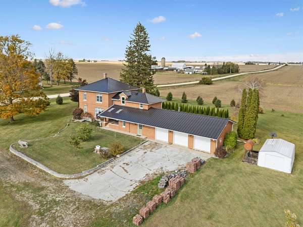 Here's a big, beautiful brick home that offers space, comfort, and a touch of country living-all on 4.59 acres! Step inside to find a large oak kitchen made for gatherings, complete with two pantries, island seating for six, and an open flow into the cozy family room with its floor-to-ceiling brick wall and gas fireplace. You'll also find formal living and dining rooms, a main-floor master bedroom, plus a full bath and laundry room all on the first level for easy living. Upstairs are three more bedrooms and another full bath. Outside, enjoy the covered porch, a big concrete patio perfect for entertaining, and a massive 3-stall attached garage-nearly 1400 square feet! The garage is insulated, drywalled, and even has a wood stove for heat. Added bonuses include a steel roof, wired for outside generator and reverse osmosis system at the kitchen sink and a one-stall enclosed carport. Conveniently located just a half mile from Highway 3 and close to Starmont Schools, this property blends peaceful country living with an ideal location.