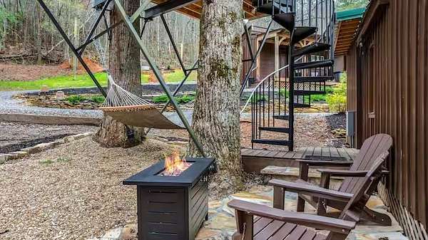 Discover an exceptional turnkey investment opportunity in North Carolina's scenic Blue Ridge Mountains - a meticulously developed 1.83-acre mountain resort property generating multiple revenue streams through its diverse accommodations. This premium property features four distinct rental units: a renovated main cabin currently leased long-term at $1,950 monthly, two luxury vacation rentals ("The Ritz" and "Mountain View") each generating $3,000- 4,000 monthly, and a newly constructed treehouse retreat ("Tree Spa"), plus an established RV rental spot providing additional steady income. Recently enhanced with luxury amenities including hot tubs and custom flagstone patios, the property boasts fiber internet connectivity, stunning mountain views, and the tranquil sounds of Shooting Creek, all while being strategically located just 40 minutes from popular destinations such as Hayesville, Franklin, Murphy, and Helen, ensuring strong year-round rental demand. The property offers substantial untapped potential for expansion and increased revenue generation. The current RV spot, generating $6,000 annually, could be transformed into a cabin site with potential annual revenue of $30,000.