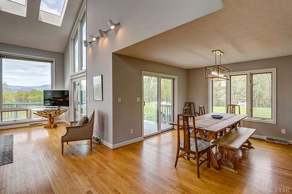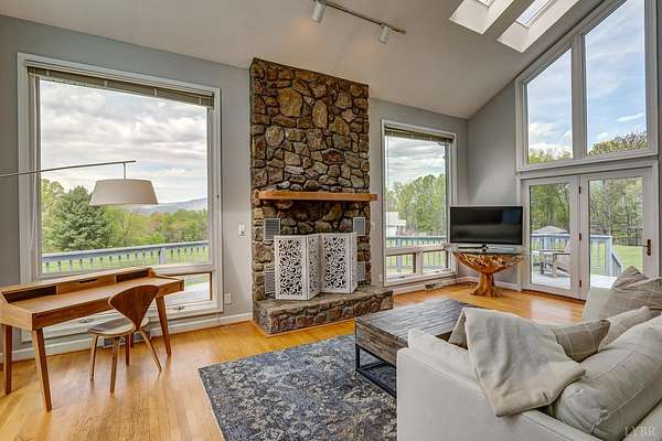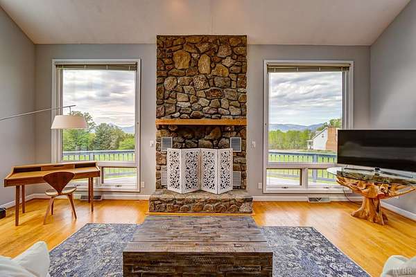 3453 Roaring Run Road is the place you'll experience views like you never have before. This stunning home was designed to bring the mountains inside floor-to-ceiling windows and skylights frame nature's ever-changing canvas in every season. Wake to spring blooming across your 2.6 acres, feel summer storms roll across the ridgeline, watch the leaves ignite in fall, and cozy up beside a soaring stone fireplace as winter settles over the peaks. The great room's floor-to-ceiling stone fireplace anchors the space with warmth and depth, while the open layout and abundant natural light make every day feel like a getaway. Three bedrooms, two bathrooms, and the ease of main-level living all wrapped in one of the most breathtaking settings the area has to offer. Sold as-is and furnished, this property is ready for you to simply move in. This isn't just a home. It's a front-row seat to the Blue Ridge, four seasons a year.