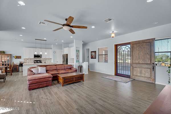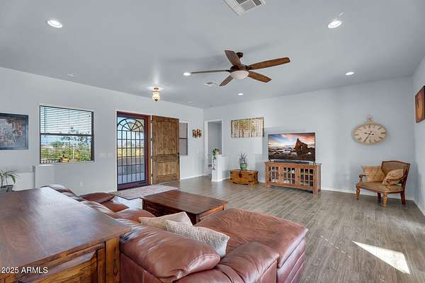 Est $4,711/moSet on 3.465 acres of pristine natural desert, this San Tan Valley property offers the space, privacy, and freedom that acreage living is known for-without an HOA. The 2,243 sq ft single-level home features vaulted ceilings, an open living area, a spacious kitchen, and generously sized bedrooms. Outside, enjoy untouched desert landscape, wide-open views, and endless possibilities for creating the setup you've always wanted. Located along desirable Sossaman Rd, you're just minutes from San Tan Valley conveniences and the scenic San Tan Mountain Regional Park. A rare opportunity to own acreage in a growing area with true Arizona charm.