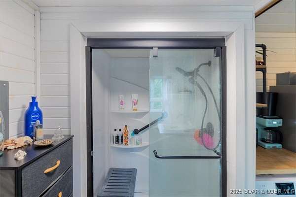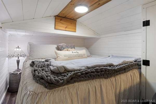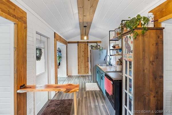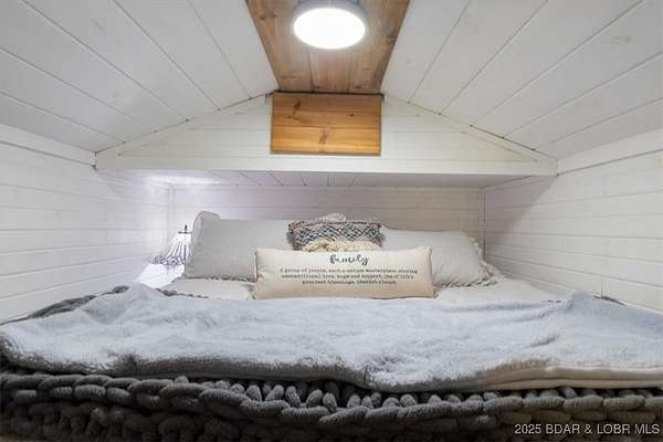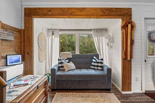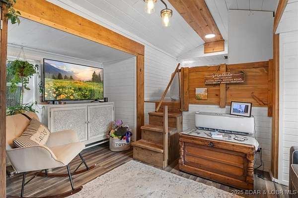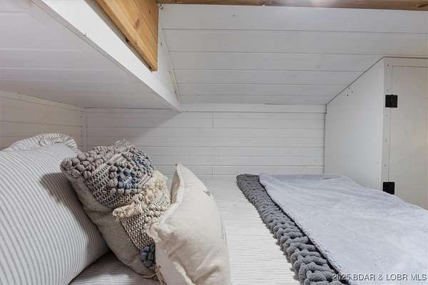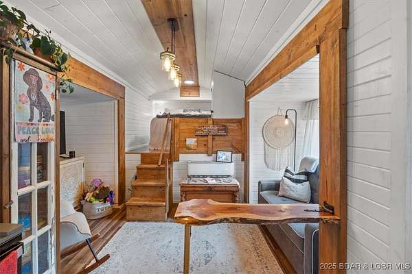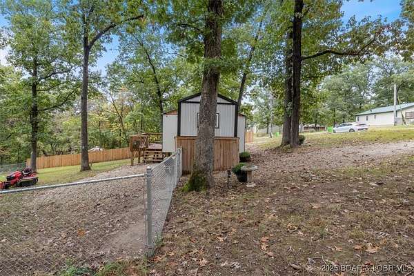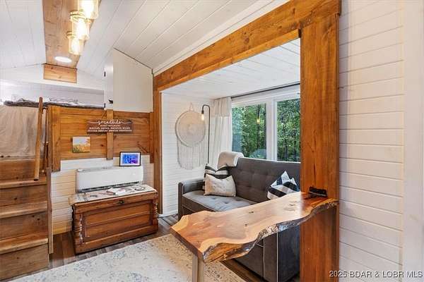 Discover your perfect tiny home getaway! Nestled on a scenic 0.6-acre lot in Stover, MO, this cozy 500 sq. ft. offers the essentials of minimalist living with thoughtful design and functionality. Located just down the road from a swim beach with seasonal lake views, you'll enjoy convenient access to Wet Spot Bar, Patriots Point Marina, and Surfside Bay Bar & Grill-making this an ideal spot for lake life enthusiasts. The property extends all the way back to a creek that flows into the lake, creating a peaceful, natural retreat perfect for fishing, kayaking, or simply relaxing in the great outdoors. Inside, the home is fully equipped-with space for a king-size bed, sleeper sofa, washer/dryer combo, appliances, and a full-size shower. Clever hidden storage, ample counter space, and efficient layout make this tiny home surprisingly spacious and livable. Connected to city water and featuring a well head for future flexibility, the property is ready for a variety of uses. Whether you're seeking a weekend getaway, a permanent tiny home, or an investment opportunity. This is a rare chance to embrace a simpler lifestyle-don't miss it!