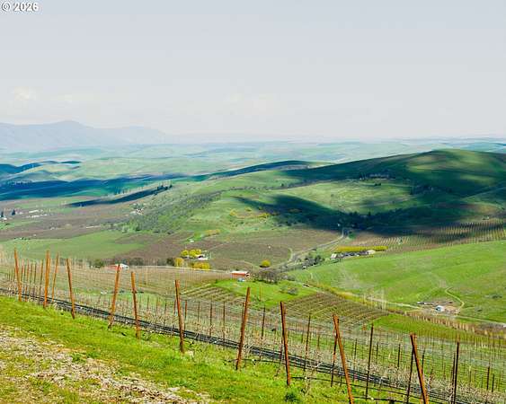 Threemile Vineyard - a rare legacy estate where world class viticulture meets the dramatic beauty of the Columbia River Gorge. Approximately 288 acres across four parcels of basalt lined coulees, rolling hills and old growth pockets, the property delivers sweeping territorial and Mt. Hood views and abundant wildlife including elk, black tailed deer and bald eagles. Planted beginning in 2019 and certified organic, the 82 acre vineyard grows 18 cultivars and is farmed block by block using sustainable practices. A custom Mitchell Lewis & Staver irrigation system with advanced microclimate and moisture monitoring supports precision viticulture, ensuring premium fruit for discerning winemakers. Soil nutrition, vine health, and irrigation are managed for top tier quality. The estate includes three addresses and flexible living options: a remodeled 4 bed, 2 bath farmhouse (2,164 sqft) with primary suite, chef's kitchen with Viking range and Sub Zero refrigerator and an expansive patio with Mt. Hood views; a 2 bed, 2 bath manufactured home (1,100 sqft) with high ceilings and hardwood floors, replaceable with a stick built residence; and an off grid guest cabin sited for inspiration. Additional farm dwelling potential may be available. A historic early 1900s barn and full agricultural infrastructure - including outbuildings, equipment storage, and livestock ready pastures - support continued operations and expansion.Ideal for multigenerational living, an expanded commercial wine program, equestrian or ranching pursuits, or a private retreat, Threemile offers exceptional development and production potential. Located just four miles to downtown The Dalles yet feeling worlds away, this estate presents a rare opportunity to craft wines-and a life-rooted in an extraordinary place. Contact us to explore this exceptional offering.