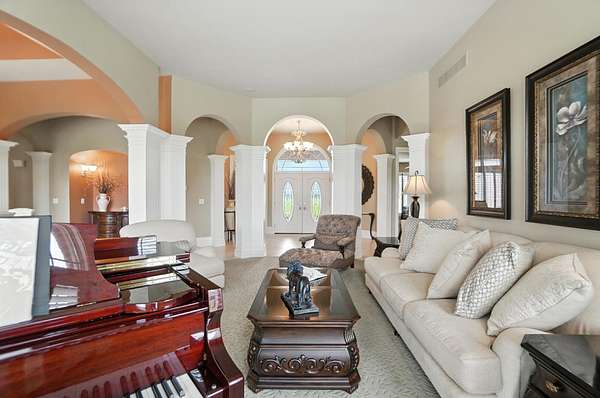 Experience country living at its finest in this custom-built 6-bedroom, 4.5-bath home located in the peaceful Fawnlake subdivision. Set on nearly 6 scenic acres, this property offers over 5,000 sq ft of beautifully finished space with pond and wooded views from nearly every room. The open-concept main level features a spacious great room with a gas fireplace and a well-appointed kitchen perfect for entertaining. The primary suite includes a private bath and walk-in closet, while two more bedrooms and a full bath complete the main floor. The walkout lower level feels like a home of its own-complete with a full bath, additional bedrooms, a theater room, exercise space, and room for a second kitchen and fireplace. Outside, enjoy the in-ground pool, patio, and deck with panoramic views, plus ample storage for lawn equipment, ATVs, and more. All this just minutes from I-75, shopping, and dining. A rare blend of space, privacy, and comfort-don't miss this one!