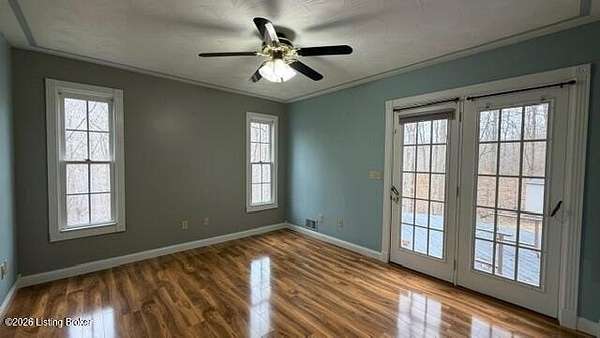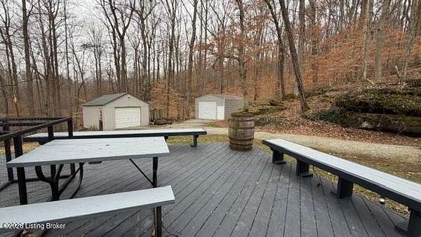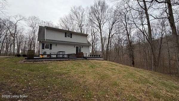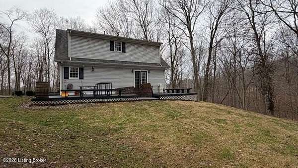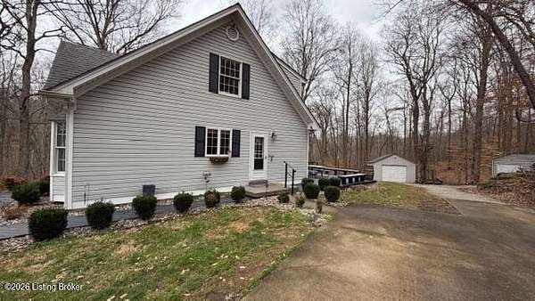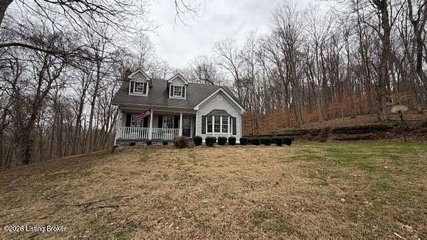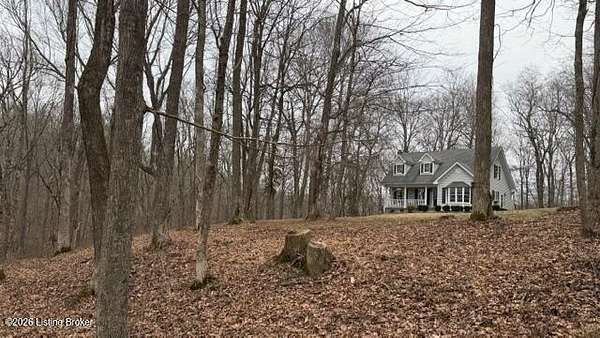 Looking for wooded acreage near all the amenities of historic Bardstown? Let's go take a look at this wonderful property at 3456 Bennett's Lane. Lovely 3BR 2.5 Bath vinyl Cape Cod with finished walkup basement & 2 one car detached garages situated on 7.99 wooded acres with nice creek & road frontage on both Bennett's Lane & Boston Rd. Home a spacious Living Room with lovely laminate flooring, Tiled Kitchen/Dining areas that include granite countertops, plenty of cabinetry & convenient breakfast bar. First floor primary suite offers laminate flooring, tiled primary bath with granite countertops. Desirable first floor tiled laundry room with 1/2 Bath. Two additional bedrooms with large closets & full tiled bath are housed upstairs. Venture downstairs to enjoy the Den as well as Office or could be used as a 4th Bedroom. Basement also houses a fully enclosed storm shelter in the concrete in the basement with an exit door on the top side. Outdoor features include a nice covered front porch perfect to enjoy your morning coffee as well as a large rear deck with scenic views of the wooded acreage and two one-car garages. Beautiful views in every direction & plenty of wildlife to enjoy. The feel of the country yet near all the amenities of historic Bardstown. The perfect place to call home. Let's go take a look today!