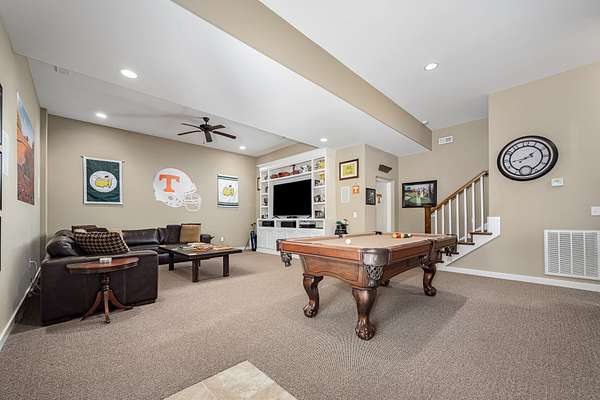 - Bedroom x 4, Den, Dining Room, Hobby Room, Kitchen, Living Room, Master Bathroom, Recreation Room