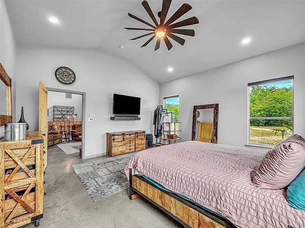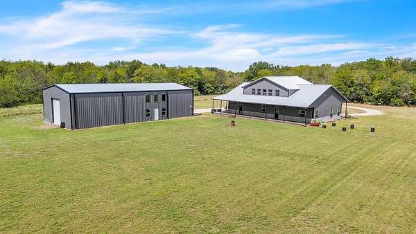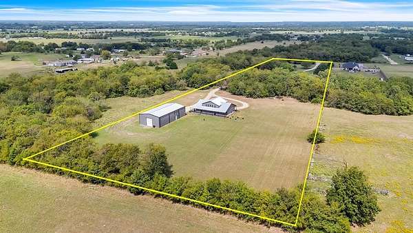 Welcome to this custom estate set on 7.8 acres in the heart of Texas. This remarkable property offers the perfect balance of elegance, functionality, and wide open country living, with thoughtful details inside and endless opportunity outside. Step inside to an inviting open-concept floor plan highlighted by soaring ceilings, abundant natural light, and custom finishes throughout. The spacious living room flows seamlessly into a chef's kitchen and dining area, creating an ideal setting for family gatherings and entertaining. Every bedroom and bathroom is thoughtfully designed to provide comfort and privacy for the whole family. A standout feature is the oversized utility room, which includes a built-in pet shower, an elevated touch that blends practicality and luxury for everyday living. Outdoors, the land is your canvas. With nearly 8 acres, the property is perfectly suited for a private ranch, equestrian use, large gardens, or simply enjoying peaceful sunsets. Anchoring the grounds is a massive 3,200 sq. ft. shop offering endless possibilities for car collectors, tradesmen, business owners, or hobby enthusiasts needing substantial storage and workspace.