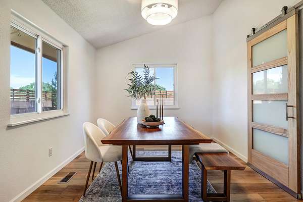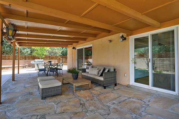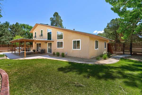 From Alameda, turn North onto Corrales Road. East onto Applewood Rd. Turn right onto Duke and house is on your left. House is on the corner of Duke and Applewood Rd.