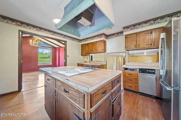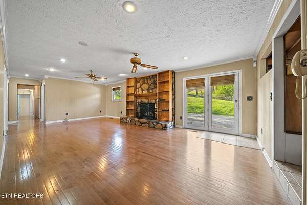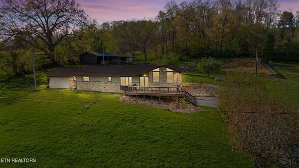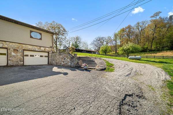 Country Bliss with Breathtaking Views - 346 Bailey Drive, New Tazewell, TN located next to the beautiful maypop wedding venue. Nestled in the serene countryside, this custom-crafted home offers unmatched charm and functionality on approximately 2 acres of picturesque land. With outstanding views and thoughtful design, this property is perfect for those seeking comfort and timeless elegance. The upper level features four spacious bedrooms, two high-end bathrooms, a formal dining room, an eat-in kitchen, and authentic hardwood floors throughout. The formal living room, complete with a stone-crafted gas fireplace, adds warmth and sophistication, while the front deck invites you to take in the stunning surroundings. On the lower level, you'll find two versatile bonus rooms, an additional den area, and a spacious garage. Crafted from sawmill lumber, the downstairs exudes classic beauty, complemented by another gas fireplace for cozy gatherings. This country retreat is truly a dream for equestrian enthusiasts, featuring a fenced-in horse ring and a five-stall horse stable. Whether you're looking for a private sanctuary or an idyllic homestead, 346 Bailey Drive offers a perfect blend of charm, craftsmanship, and rural tranquility. Buyer to verify all information