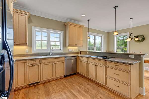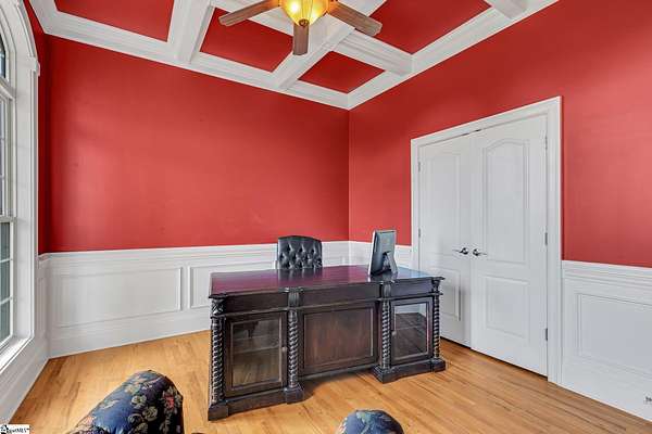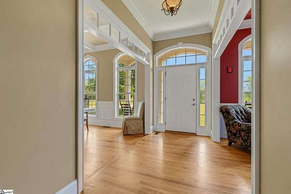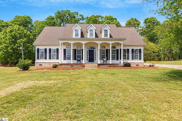 Custom-Built Home on Over 8 Acres Welcome to this stunning custom-built home situated on over 8 acres of level land, waiting for someone to call their own. Enjoy watching wildlife such as deer and turkey on the rocking chair front porch or the screened porch in the backyard. The property boasts flat land with a large field in front, providing a picturesque setting. This residence features 3 bedrooms and 3 bathrooms, Inside, the main areas are adorned with hardwood floors, adding warmth and elegance. The beautiful dining room and office feature coffered ceilings and provide floor to ceiling widows giving picturesque views. Upstairs holds an unfinished space brimming with endless possibilities. The spacious kitchen is well-appointed with hard surface countertops and a raised bar, making it perfect for both casual meals and entertainment. The great room is expansive and cozy, with a wood-burning fireplace and double French doors leading to the screened porch which make it perfect for large gatherings. The primary suite conveniently located on the main level is spacious, with lots of natural light that adds charm. The primary bathroom includes double sinks, his and her closets, a jetted tub, a stand-alone shower, and separate lavatory. Located close to shopping, dining, and entertainment in Simpsonville, this home strikes the perfect balance between access to town amenities and the tranquility of a private oasis. Additionally, it is conveniently situated near City Scape Winery and Happy Cow, providing easy access to local attractions and leisure activities including a brand new Golf course the Kawonu Golf Club which is coming soon. This property is an exceptional find, providing both comfortable living and ample space to explore and enjoy the outdoors. Schedule your showing today. Owner is related to listing agent.