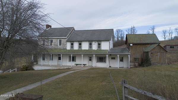 Historic Farm with Two Homes, a Huge Barn, and Acres of Possibilities in the Heart of Bedford County. The Large Farm House on 45 Acres was built over Three Centuries Featuring 4 Bedrooms and 3 Full Bathrooms. The Original Stone Section was built in the 1760s. The Spacious Main Section added in the 1890s. The Back Section was built in the 1900s containing the Kitchen and Laundry Room and connecting the Classic Summer Kitchen. This Roomy Home Includes a Formal Dining Room, Various Living Areas, and Vintage Hard Wood Floors. The Original Section of the House has a Unique Basement with a Barrel-vaulted Ceiling (the only known one of this Style in this Part of the State). The Second House with 4 bedrooms and 2 full baths was recently Rehabbed and can be used as a Single Family Home or easily enhanced to be an Up and Down Duplex. Nice Deck in the Back, Solid Wood Trim throughout, and Great Layout Provide very Comfortable Living. The Bottom Floor has a Full Kitchen, Living Room, 2 BRs, and Full Bath. The Top Floor Features 2 BRs with Walk-in Closets, Living Room, Full Bath, and Laundry Room. The Great Barn (82' x 72') Provides So Much Room for Storage, Animals, Work Shop, or other Uses. The New Barn Roof Includes Skylights and the Upper Level has Tongue and Groove Flooring. The Lower Level has a New Concrete Floor. Additional Structures include a Garage, Two Sheds, a Milk House, and the Old Chicken House. ideal for farming, hobby use, or outdoor recreation. Conveniently Close to Route 30 between Bedford and Everett. Low Taxes. The Houses, Expansive Barn, Outbuildings, and Acreage Offer Many Residential, Business, Agricultural, and Pleasure Uses. Continue Making History at this One of Kind Property.