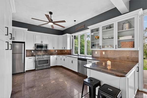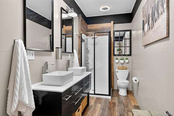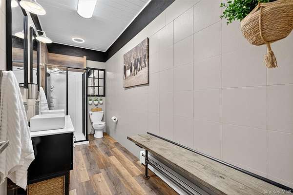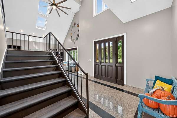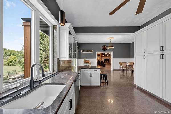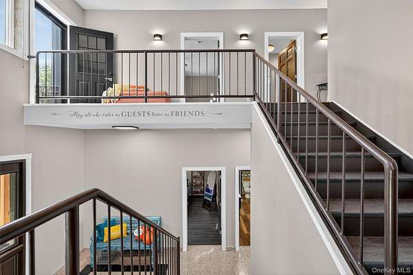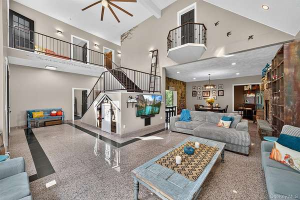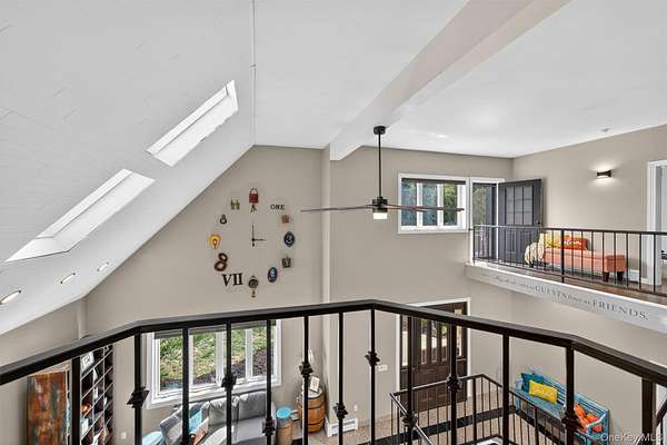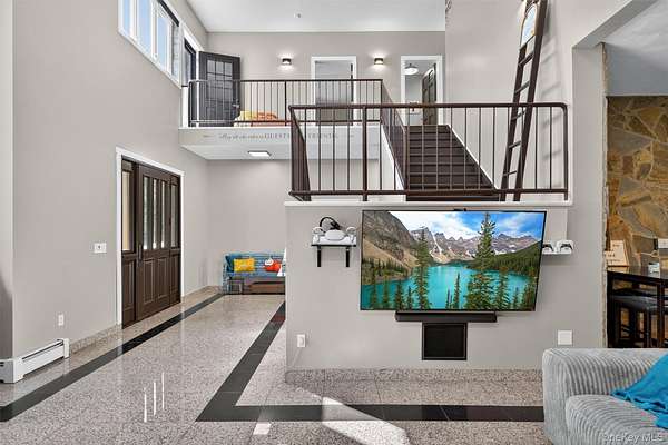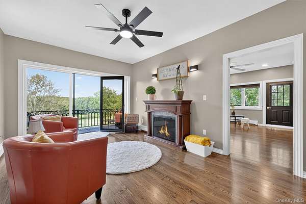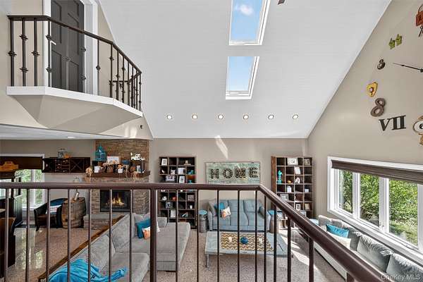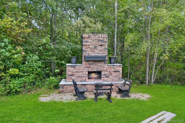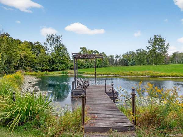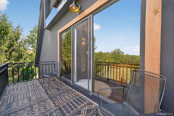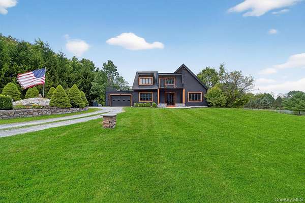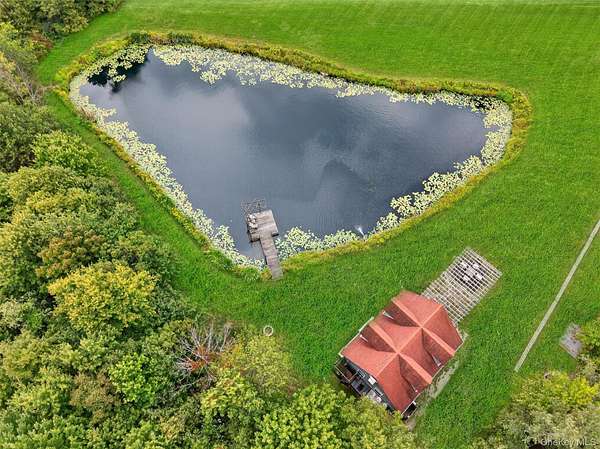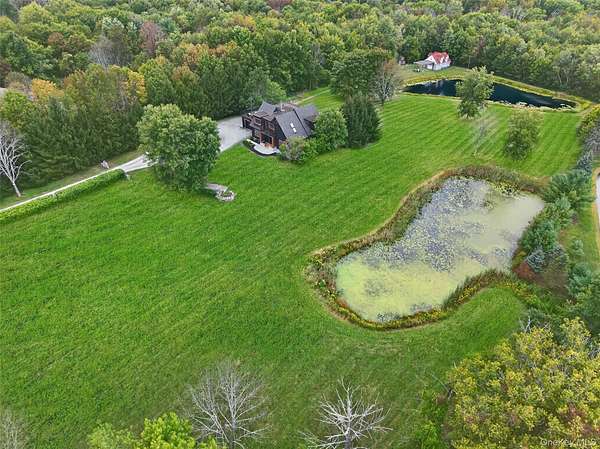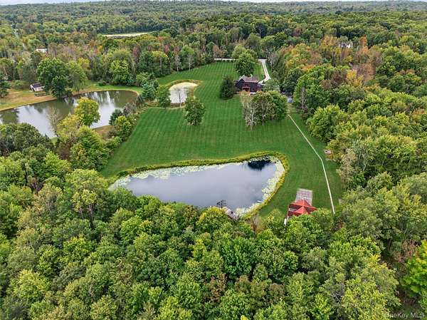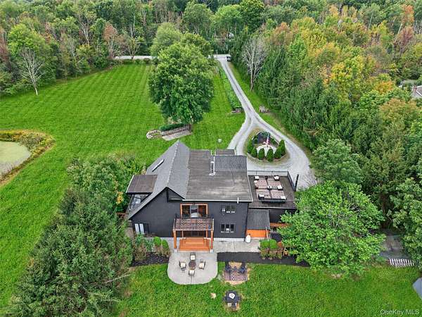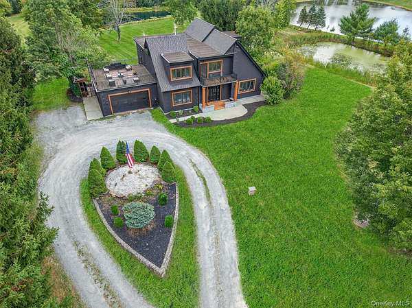 Welcome to 346 Mullock Road - A Private Pondside Mini-Estate in the Heart of the Hudson Valley Tucked away down a long, tree-lined drive in the sought after Minisink Valley School District, this 3-bedroom, 3-bathroom contemporary sanctuary unfolds across 3300+ sqft of architecturally distinctive living space, set on 5.4 private, park-like acres with not one, but two spring-fed ponds teeming with bass, perch, catfish, and sunfish. The back pond is a hidden treasure-clay-lined and 15 feet deep with its own dock and sitting area, perfect for swimming, fishing, or ice-skating in the winter months. As you approach, the serenity begins. A teardrop circle driveway welcomes you to the oversized 2-car garage, with ample parking for guests. Step onto the covered front porch, and through the front door into a home that feels like both a modern gallery and a warm embrace. The foyer opens dramatically to the second story, sunlight pouring through towering windows, and tucked under the stairs-a thoughtfully designed "doggy bedroom," because even your pup deserves a slice of luxury. The main level offers open-concept living with granite flooring, a cozy gas stone fireplace, and a seamless flow from the living space to a chef-inspired kitchen. Outfitted with state-of-the-art stainless appliances, granite countertops, a 6-burner gas/electric range, oversized refrigerator, and breathtaking views from the massive sliding doors-this kitchen is more than functional; it's a place to gather, to cook, to live. A spacious guest bedroom and updated full bath complete the main floor, alongside a private laundry room. Ascend to the second floor and experience a level of detail that makes this home truly special. Rich hardwood floors run throughout, creating a warm and inviting tone. At the top of the stairs, you'll find a large sitting area or reading nook, with massive sliding glass doors that lead to a rear-facing balcony-the ideal spot to sip coffee and soak in the peaceful views of the pond, clubhouse, and woodlands.The primary bedroom features dual closets, a private balcony, and overlooks the living room from a charming interior Juliet perch. The second upstairs bedroom boasts a massive deck and an ensuite bathroom. An additional den, library, or home office, a front-facing balcony, and another full bath completes the level-ideal for remote work or peaceful study. But the magic doesn't end inside. Wander through the backyard past lush grass, mature trees, and garden spaces. The gentle slope also lends to great sleigh riding. Grill over a custom-built Santa Maria-style BBQ, roast marshmallows around the stone fire pit, play a game of horseshoes with friends, and eventually arrive at the most delightful surpriseThe Clubhouse." This two-story retreat has a true vibe, offering a cozy, rustic-chic hangout space for unforgettable gatherings, late-night laughter, or even artistic escape. It's like having your own private campground, right at home. This property was engineered with intention and durability-built with steel I-beams, 2x6 framing, and a concrete roof layered with foam insulation and EPDM for ultimate efficiency. Situated just 15 minutes to major highways and the train to NYC, and under 90 minutes to Manhattan, and only 10 minutes from NJ and PA borders, this rare gem offers complete privacy while staying connected to everything the Hudson Valley has to offer: hiking, biking, the Delaware River, wineries and distilleries, apple orchards, seasonal views local attractions (LEGOLAND) and charming river towns. This isn't just a house-it's a retreat for the soul and a home you'll never need a vacation from. A place where every pond ripple, every breeze through the trees, every thoughtful design choice whispers the same thing: You belong here.