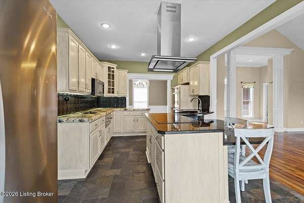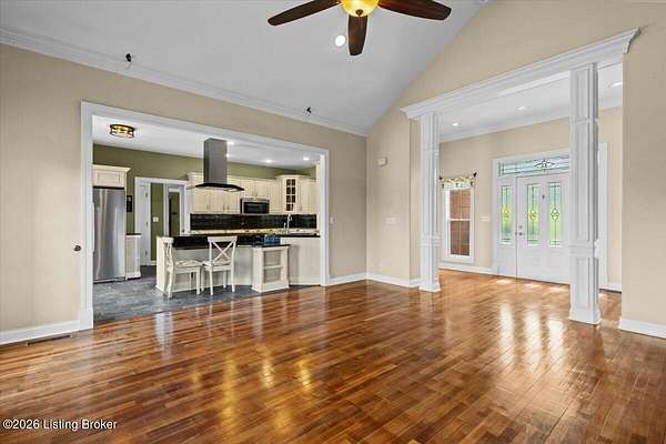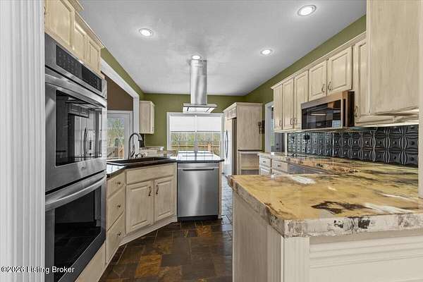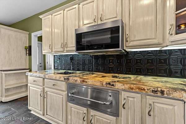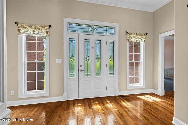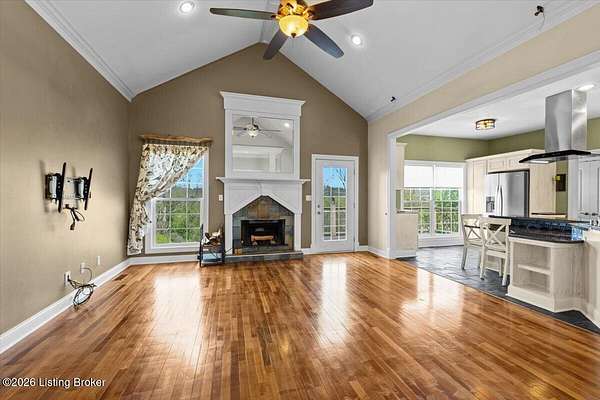 Tucked away on over 2.5 private acres, this beautifully maintained brick ranch offers the perfect blend of comfort, space, and serene country living. Step inside to find a thoughtfully designed main level featuring a spacious primary suite with a well-appointed en suite bath, providing a relaxing retreat at the end of the day. The heart of the home is a chef's kitchen, ideal for everyday living and entertaining. This space features a coffee bar area, double ovens, a warming drawer, pot racks, a convection microwave, and a five-burner cooktop. A spacious dining room is the perfect space to enjoy the fruits of your labor! The kitchen flows seamlessly into a warm, inviting great room with a beautiful fireplace and hardwood flooring. Two additional spacious bedrooms and a full bath on the main level offer flexibility for family or a home office. The laundry room rounds out the main level. The finished walkout basement expands your living space with a generous family room, an additional bedroom, and a full bath-perfect for guests or extended stays. Curl up for a movie on the large screen with a projector and sound system. Enjoy the outdoors from the large deck overlooking your private acreage, offering peaceful views and plenty of room to relax or entertain. This property combines privacy, functionality, and charm-don't miss your opportunity to make it yours!