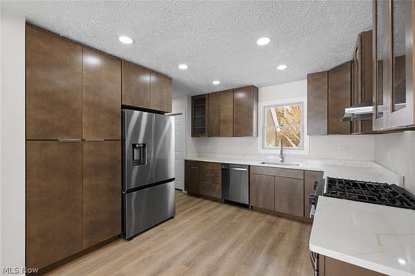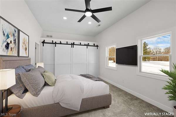 Welcome to your private oasis in the heart of Columbia Station! This beautifully updated 4-bedroom, 2.5-bathroom home, built in 1975 and spanning 2,040 square feet, sits on a serene 4.13-acre wooded lot that offers unparalleled privacy while sharing a picturesque pond with the neighbor-perfect for nature lovers and those seeking a peaceful retreat. Come inside to discover a spacious layout designed for modern living. The expansive master bedroom and grand living room boasts soaring 10-foot ceilings, creating an airy and luxurious feel. The grand living room serves as the home's centerpiece, a cozy fireplace anchored by a stunning 19-foot red oak mantle, and plush 60-ounce face-weight carpet that's so soft, you'll debate about sleeping on it. Fresh cosmetic remodels throughout the kitchen, bathrooms, bedrooms, and common areas bring a contemporary vibe, with the kitchen shining as a chef's dream-complete with sleek quartz countertops, brand-new modern cabinets, two spacious pantries for ultimate organization, and all-new appliances that make everyday tasks a breeze. Brand-new exterior doors and flooring tie it all together for a fresh, move-in-ready appeal. Convenience is key with a laundry room that's truly exceptional-rivaling local laundromats in size and functionality. The basement is waterproofed on the interior and equipped with two sump pumps, providing ultimate protection against heavy rainfalls and snow melts. Ample storage abounds, including a large, attached garage with walk-up steps to a generous storage room, plus a detached garage offering even more space with its own walk-up access to additional storage. Outside, the brand-new roof and siding ensure worry-free maintenance. Enjoy outdoor living on the expansive 20x20 concrete back patio, perfect for barbecues, gatherings, or simply soaking in the peaceful surroundings. This home combines comfort, style, and tranquility in one unbeatable package. Don't miss your chance to make it yours!