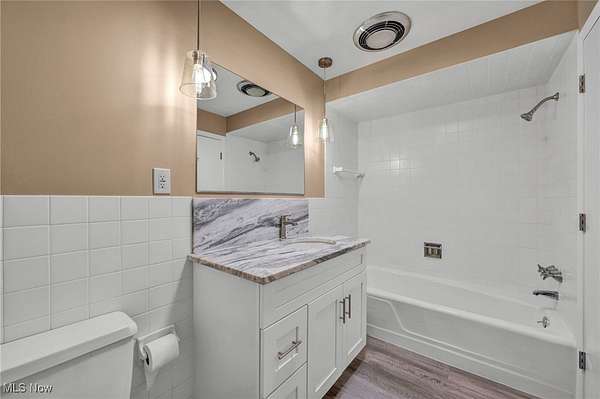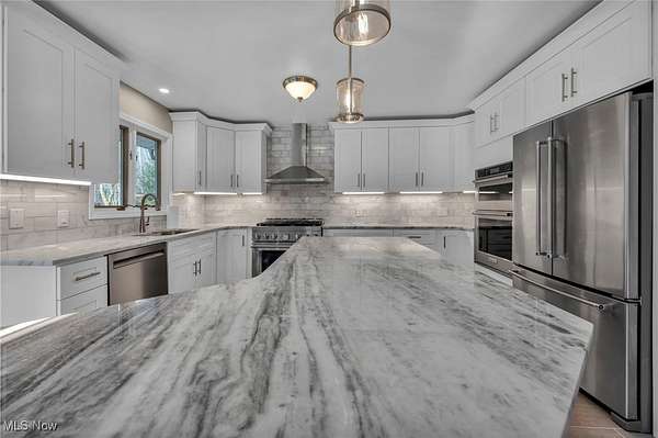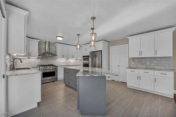 This fully renovated home is packed with high-end upgrades and modern touches throughout, including a new Owen's Corning roof with a 50-year guarantee and a wolmanized wood deck for year-round outdoor enjoyment. Inside, you'll find new oak hardwood floors in the living, dining, and second-floor areas, oak stair railings and spindles, new carpeting in all four bedrooms, and updated bathrooms featuring new vanities, countertops, sinks, faucets, mirrors, and lighting. The master bath boasts a beautiful tiled shower with a glass enclosure. The chef's kitchen features quartzite countertops, soft-close shaker cabinets, ceramic tile flooring, LED under-cabinet lighting, and premium KitchenAid appliances, including a 36" gas range and French door refrigerator. The lower level offers even more space with a wet bar, remodeled second kitchen, rec room, and waterproof luxury vinyl tile flooring throughout, plus a new hot water tank for added convenience.