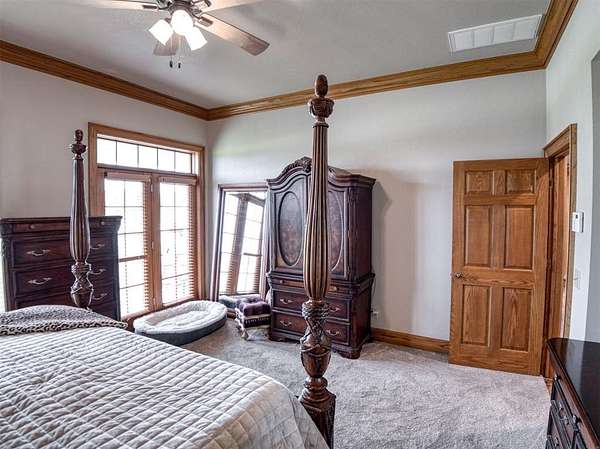 Escape to a turnkey rural paradise in Holdenville, OK. Meticulously maintained and fully perimeter-fenced for livestock, this Southern Living retreat is an outdoor enthusiast's dream. Enjoy exceptional hunting for trophy whitetail, turkey, quail, and waterfowl. Water is incredibly plentiful with 6 ponds, including 3 trophy bass ponds (FL hybrid F1 crosses) and a picturesque house pond with a newer fishing pier. Homesteaders will love the producing fruit trees, large 1/4-acre garden with a frost-free hydrant, and a 10x30 dog kennel with its own septic. Need more room to roam? An additional 40 adjoining acres are also available! Overlooking the acreage is a stunning ~3,808 sq. ft. custom home (built 2003) framed by a sweeping circular drive and 3 gorgeous covered porches. Inside, enjoy soaring, natural-light-filled 2-story Pella windows, solid core doors, and 11,000 sq. ft. of breathtaking red oak trim. The layout is perfect for everyday farm life, featuring formal living and dining spaces that flow seamlessly into an inviting open den with a cozy fireplace. The chef's kitchen offers custom cabinetry, granite counters, and premium appliances. Retreat to the main-level primary suite, which provides ultimate peace of mind with a FEMA walk-in storm shelter right in the closet! Upstairs hosts 3 incredibly spacious bedrooms and a cozy office/craft room. The sellers built this forever home and maintained it with an open checkbook ("if it broke, they fixed it")-until the grandkids called them away! Premium upgrades include a 2023 Class 4 roof, new garage doors, dual HVAC, new hardwood floors, and plush 75oz carpet. Plus, say goodbye to weather worries thanks to a newly purchased 26KW Kohler generator that effortlessly powers the entire home! Ask your Realtor for the extensive list of amenities, update invoices, and owner wildlife trail-cam photos. Schedule your private tour today!
