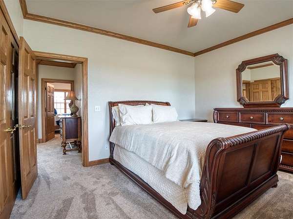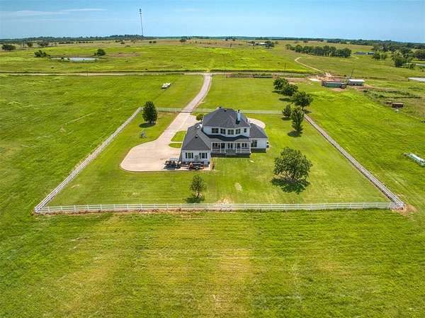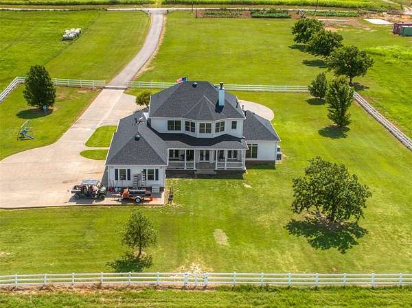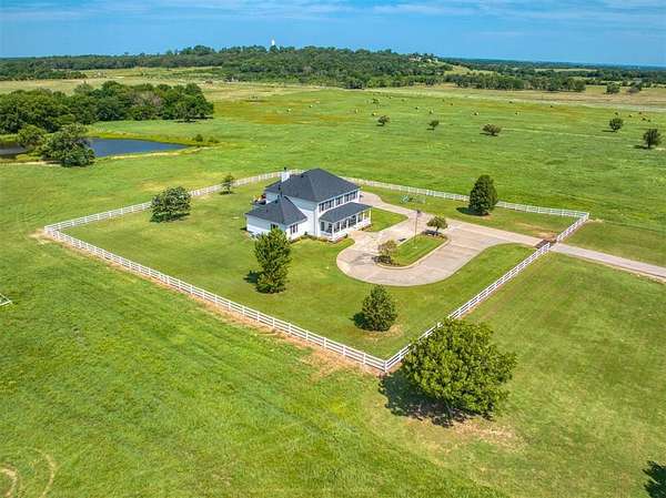 Southern Living Retreat on 20 Acres (Up to 135 additional acres Available!) Beautifully maintained property just outside Holdenville, OK offered with 20 acres and the option to purchase additional land up to approximately 155 acres total. Additional acreage available only with purchase of the home. Seller open to creative options. Enjoy a scenic pond with newer fishing pier for a variety of stocked fish and abundant wildlife including whitetail deer, turkey, quail, and waterfowl. Property also features producing fruit trees, a 1/4-acre garden with frost-free hydrant, and a 10x30 dog kennel with its own septic. Custom home built in 2003 offering approx. 3,808 sq ft with circular drive and three covered porches. Interior features include floor-to-ceiling Pella windows, red oak trim, solid core doors and much more. Functional layout includes formal living and dining, plus a spacious den with fireplace open to a well-appointed kitchen and butler kitchen with custom cabinetry, granite countertops, and quality appliances. Beautiful main-level primary suite includes a walk-in storm shelter located within the closet. Upstairs offers three oversized bedrooms and a flexible office/craft space. Recent updates include 26KW Kohler whole-home generator, Class 4 roof (2023), new garage doors, dual HVAC systems, and updated hardwood flooring, carpet, fresh paint throughout and more!! Well cared for over the years. Sellers relocating to be closer to grandkids. Schedule your private showing today.