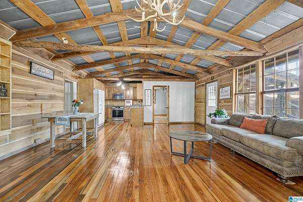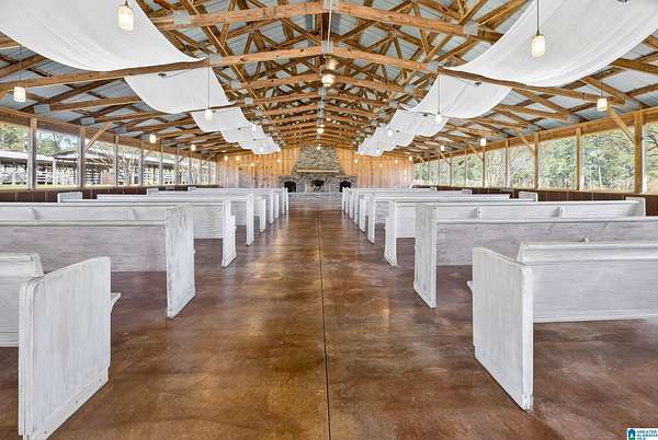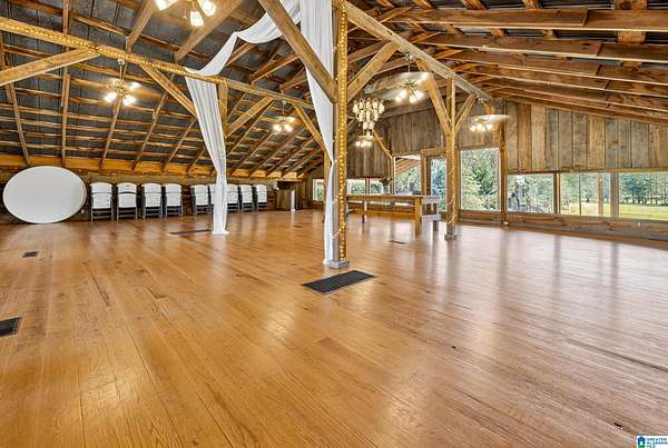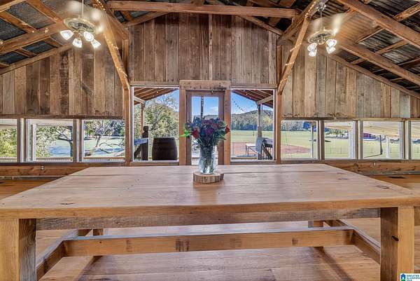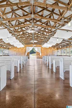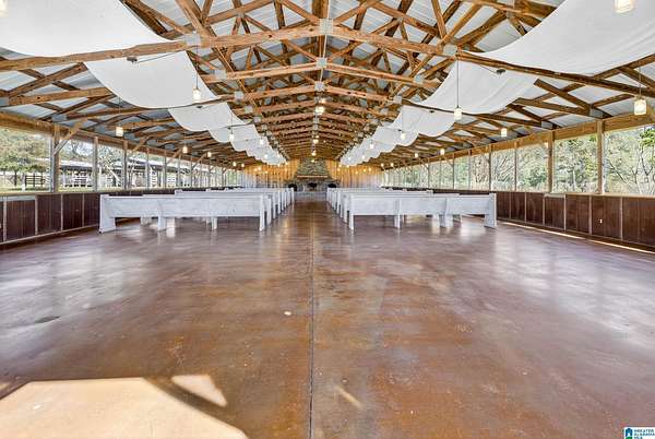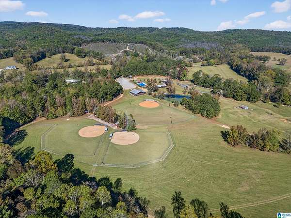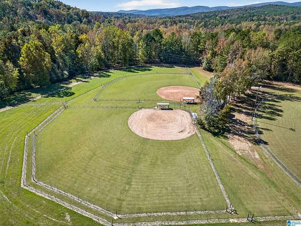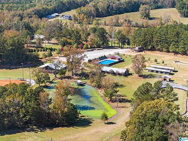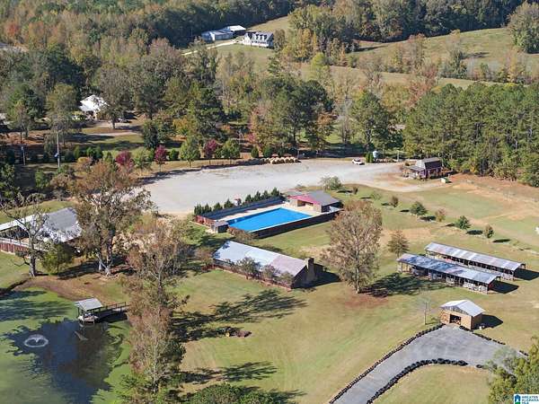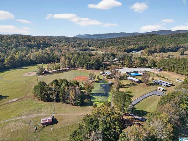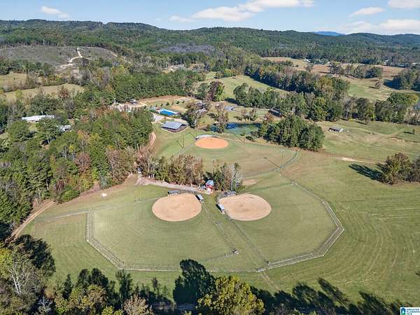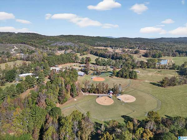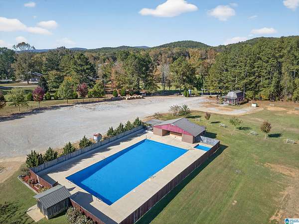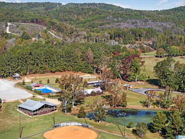 Truly one of a kind! This 64-acre property sits at the foothills of Cheaha Mountain, just 15 minutes from the Oxford Exchange and I-20, perfectly positioned between Birmingham and Atlanta. On the back 24 acres, a private 3BR/2BA cabin (1,551 sq ft) rests along a creek with fenced pastures, a barn, and workshop--ideal for a hunter's cabin, short-term rental, or private residence. The property borders the Talladega National Forest and offers unmatched privacy. The front portion includes a restaurant with full kitchen and covered porch, ballroom/event space, wedding barn with rock fireplace, bridal and groom houses, Olympic pool with concession/ticket area, three softball fields with restrooms, 19 camper hook-ups, go-kart track with karts, and a picturesque covered bridge and pond--perfect for weddings, events, or recreation. Endless potential for venue, retreat, or private estate!