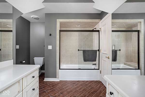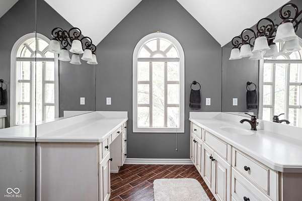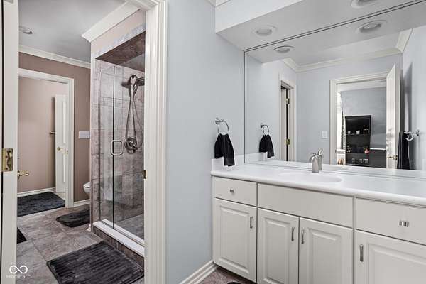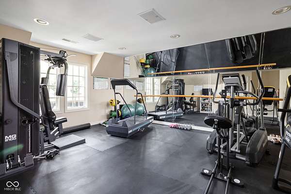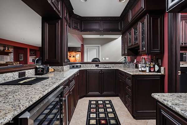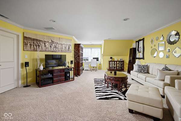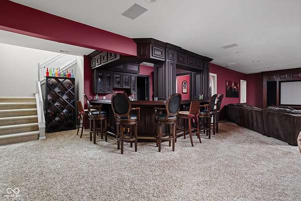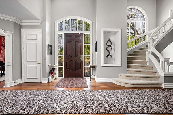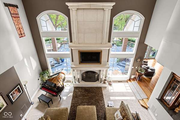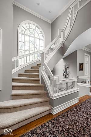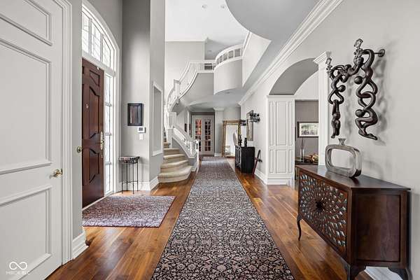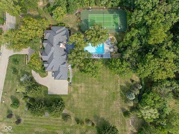 Set on 2.7 private tree-lined acres in Carmel's prestigious Bridlebourne community, this exceptional 10,378-square-foot estate blends refined luxury with resort-style living. The thoughtfully designed home features a main-level primary suite, six additional bedrooms, and eight baths, ideal for both everyday living and entertaining. A chef's kitchen with Wolf and Sub-Zero appliances anchors expansive living spaces highlighted by Brazilian cherry hardwoods and soaring two-story ceilings. The fully finished lower level offers a home theater, full bar, wine cellar, and ventilated lounge. Control4 automation enhances modern convenience, while the outdoor retreat includes a pool, hot tub, tennis court, and views of a peaceful nature reserve.
