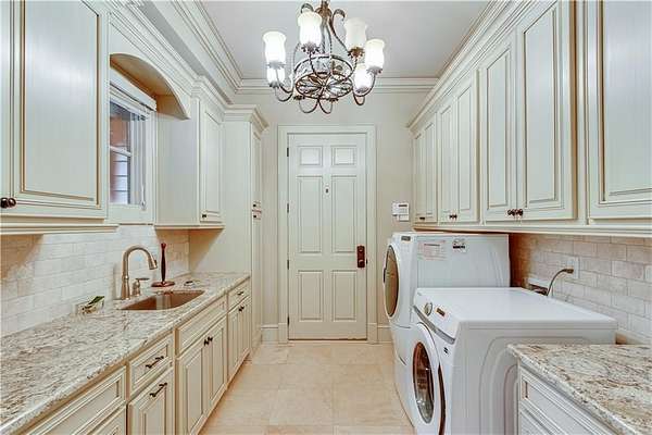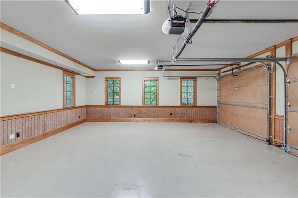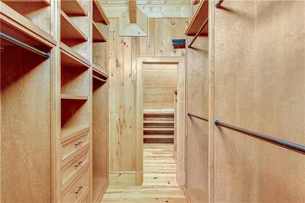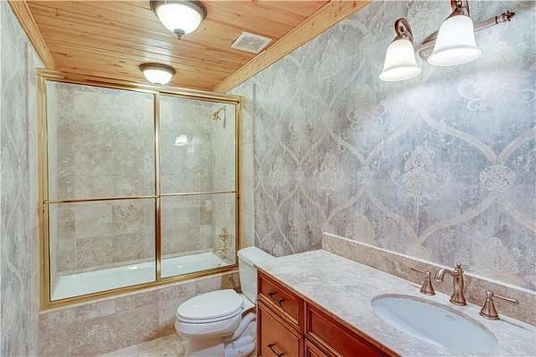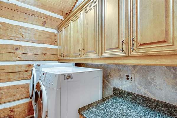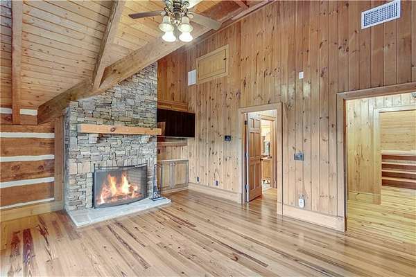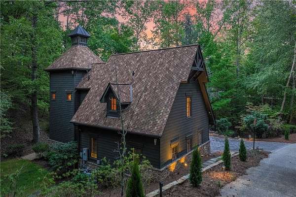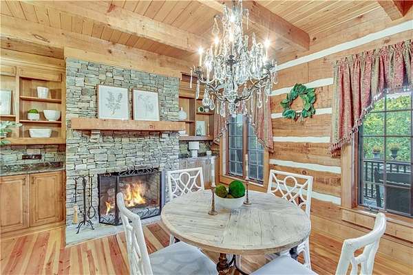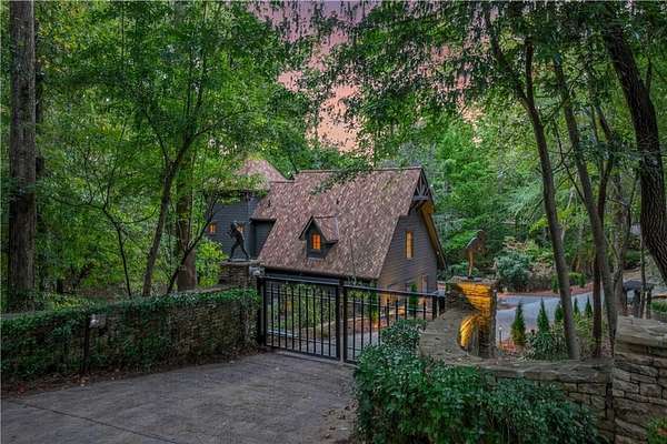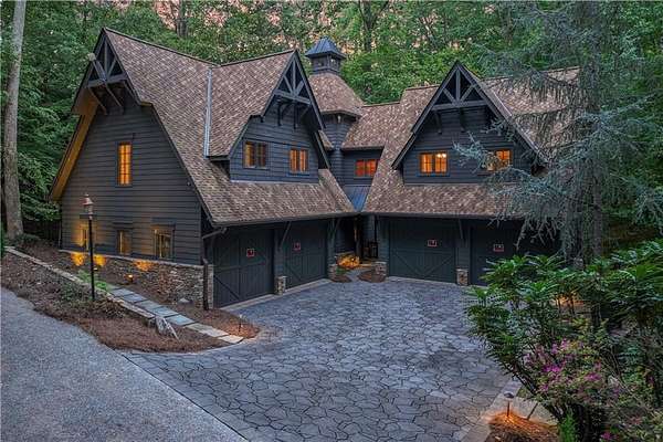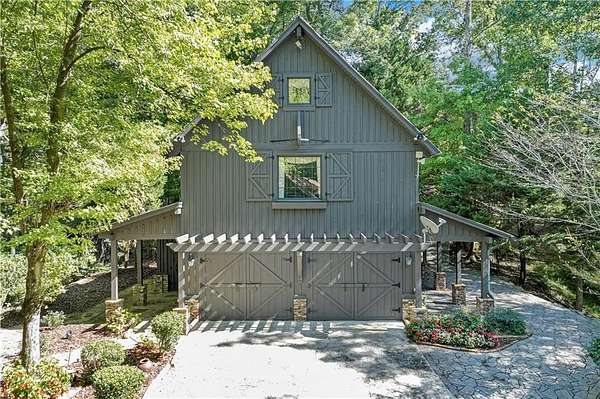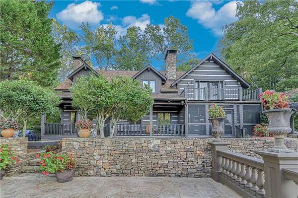 This magnificent, elegantly rustic, custom built Lake Lanier estate on 6.78 acres includes a Main Home, a Carriage House, and 2 attached Guest Houses on deep water with a double slip party dock, along with a stream, multiple waterfalls and water features, covered gazebo, and stone walking paths, is like no other property you've experienced! It could easily function as a private estate, investment opportunity, or corporate retreat. The refined gated entrance and tree lined drive over the stream welcomes you to the Main Home reminiscent of a log home in the mountains. Once inside, you'll appreciate the family room with gorgeous, hand hewn logs and beams, pine floors taken from an 1800's cabin, both joined with wood pegs, wood ceiling, stone fireplace, and an open porch leading to a stone patio that captures beautiful lake views. The kitchen boasts a stone backsplash, Viking appliances of a 4 burner with griddle gas range and refrigerator, a Bosch dishwasher, built-in pantry, a second stone fireplace in the dining area, and lake views. Just off the kitchen is a laundry room, and a hall full bath with SteaMist shower. Walk past a spiral staircase (reclaimed from a ship) and you'll find a generous Guest bedroom with ensuite offering a third stone fireplace, built-ins, lake views, and French doors to a private screened porch. The bath includes a gorgeous stone accent wall and a huge, dual head shower. Upstairs, the Primary bedroom with ensuite offers a cozy sitting/office area featuring a wood burning stove against a stone accent wall. Built-ins and a spacious morning bar lead into the luxurious bath with a makeup area, SteaMist shower, and stone floors. Within the bedroom, a fourth stone fireplace, huge walk-in closet with built-in storage, and French doors leading to your private deck overlooking the lake, combine to enhance the beginning or ending of your day. An additional bedroom/office with 3 closets, a sitting area, and a fifth stone fireplace will warmly welcome guests. Two hall closets and a hall, full bath completes the upper floor. The Carriage House features a 2 bay, heated and cooled garage with an interlocking tiled floor. Upstairs you'll enjoy the convenience of a full kitchen with a Thermador 4 burner gas range, 2 Subzero under counter refrigerators, a Bosch dishwasher, granite counters, stained cabinets, wood walls and ceiling, and wide board pine flooring. A spacious dining and living area focuses on a stacked stone accent wall with wood burning stove. A full bath, linen closet, and closet, along with a loft bedroom makes a perfect space for your guests. Should there be a power loss, a Generac generator supports the Main Home and the Carriage House. The Guest Homes allow for additional family or guests to feel right at home. Each home features 2 garage bays that are heated and cooled with separate thermostats, with 1 bay hosting an EV charger. Upon entering the homes, you'll find a laundry room with glazed cabinets, Travertine tile floors, granite countertops, and a sink. Before you walk upstairs, look up! You won't want to miss the stunning, light-filled, wood ceiling. Once upstairs, you'll find that both living spaces are private, yet conveniently connected. They each offer kitchenettes with Kitchen Aide refrigerators, drawer dishwashers, and microwaves. The family and dining areas are intimate, and both have ample bedrooms with ensuites. Stone paths from the Main home and the Guest Home lead past the stream, waterfall, and pond to a covered gazebo with beautiful lake views. The 32x32 double slip, covered dock is teak and has been recently pressure washed and oiled. Included at the dock are a boat hoist and 4 jet ski ports. The dock electrical was also recently rewired. This amazing property also features stone accent walls. A walkable paved cart path that leads to the adjacent vacant lot with a concrete drive allows for overflow parking, an RV or trailer for your watercraft, and a separate gated entrance.