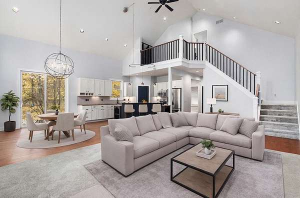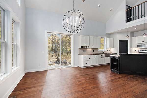 Welcome to 3464 Jeffrey Spur, a custom-built gem nestled in Hamilton's exclusive Silver Diamond Acres. Set on over 2 acres of wooded serenity, this expansive 5-bedroom, 3.5-bath home offers more than 4,200 square feet of refined living space. The open-concept layout features soaring vaulted ceilings, oversized windows that bathe the interior in natural light, and a gourmet kitchen with granite countertops and a spacious island, perfect for entertaining. The elegant primary suite features two walk-in closets and a spa-like ensuite, while the lower level offers a full bar area perfect for hosting guests. Enjoy peaceful mornings in the sunroom and cozy evenings around the custom stone fire pit, all while surrounded by nature and privacy. This is upscale country living at its finest.