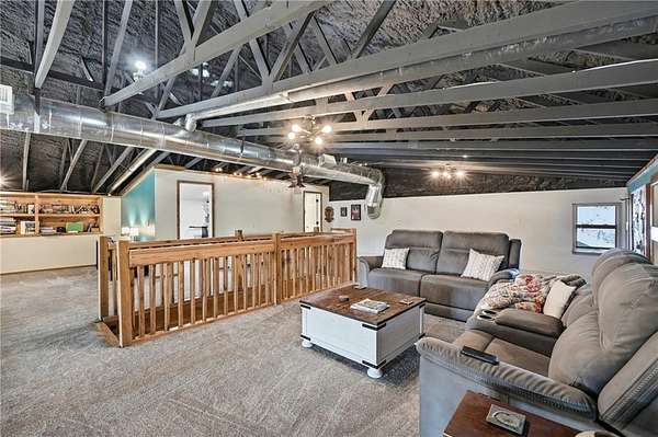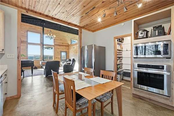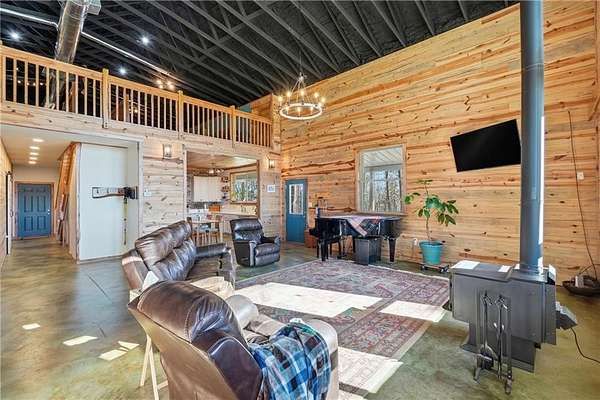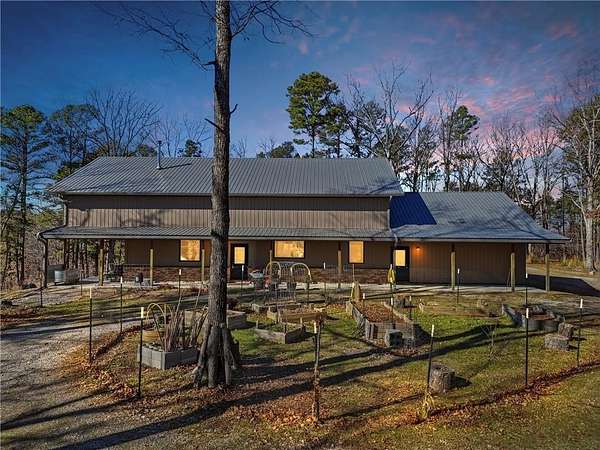 Ozark Vista 40 acres with 2600 sf Barndominium just completed after 4 years. Wood finishes are cut and crafted trees from this property. Don't see many Barndos with this attention to detail. Two ridge top parcels to explore for creeks,bluffs,caves,springs, etc. Open large loft with bath and large finished closet serves as a guest area or 3rd bedroom suite with office area. Large main bedroom suite with nice walkin shower and tub, not to mention sauna in large walkin closet off bath. Main level guest room with guest bath just across the hallway. Wonderful custom kitchen, complete with walkin pantry. Great Room has a grand piano (neg separately) and a free standing woodburning fireplace for cozy winter days. High ceilings yet still very energy efficent electric bills. Separate 18x18 metal building with overhead door for your fishing boat or UTV with 8x18 extended roof on one side. Garage is 26x30 and has lots of room for workshop and vehicles. Stained concrete floors on main level make this hm pet friendly.