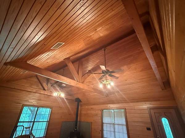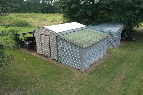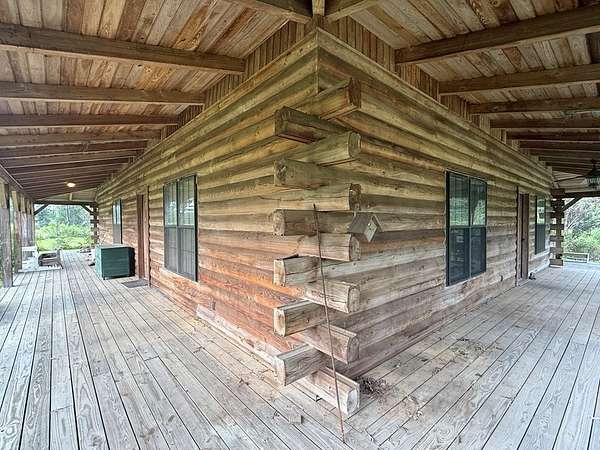 Motivated Seller offering concessions for New Kitchen Cabinets, previously outfitted with antique furniture. Charming 3 bedroom, 1 bath log home with 2-car attached carport set on 11 cleared acres with a pond, partial fencing, barn, concrete workshop, multiple outbuildings, greenhouse, and chicken setup—perfect for your homestead dreams! Enjoy wraparound porches made for sunrises and sunsets, plus an almost-finished storage room that could easily become an extra bath. Inside, the open-concept design shines with cathedral ceilings, a woodburning stove, hardwood floors, and rustic wood walls and ceilings. The kitchen is a blank slate, ready for your personal touch (previously outfitted with antique furniture as cabinetry). Walk-in attic space adds even more storage potential. Conveniently located on the corner of FM 252 and CR 480, halfway between Jasper and Kirbyville, with paved road access. This unique property offers warmth, character, and endless possibilities!