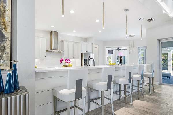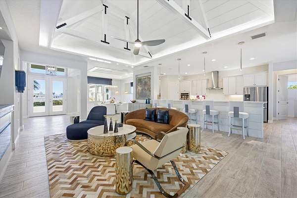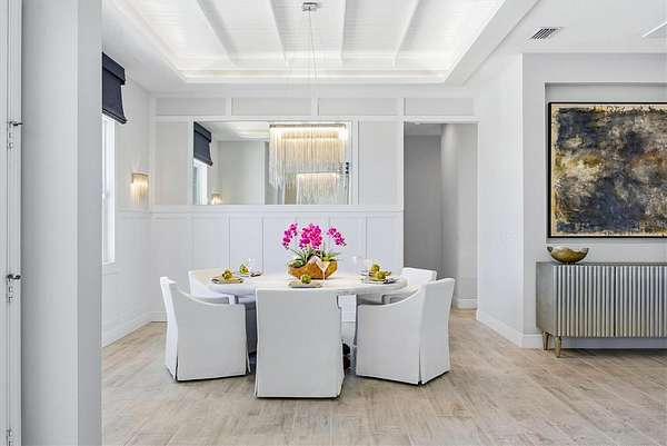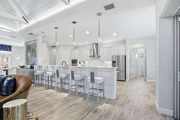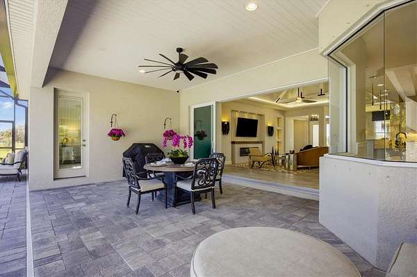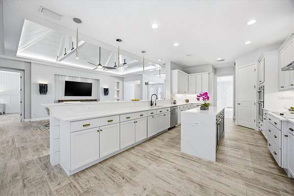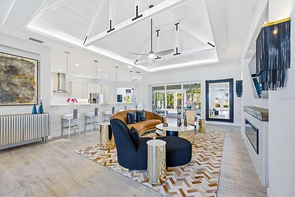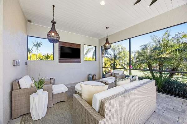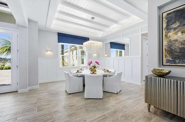 Spanning more than 3,400 square feet, the main residence is gracefully positioned on just over 3.5 acres, surrounded by sweeping pastoral views that create a sense of privacy and tranquility rarely found so close to modern conveniences. From the moment you arrive, the pavered drive and striking double glass-door entry set the tone for the sophistication within. The interior is rich in architectural detail, featuring custom ceilings, bespoke woodwork, coffered and tray ceilings, and wide-plank blonde beachwood-style tile flooring throughout. Sunlight pours into the home, illuminating thoughtfully designed spaces where modern elegance meets relaxed coastal charm. The chef's kitchen is both stunning and functional, offering a generous island, expansive breakfast bar, stainless steel appliances, double ovens, and a vented hood, all designed for effortless entertaining. Adjacent to the kitchen, the dining nook is framed by an aquarium-style glass window overlooking the screened pool, crowned by a striking beachgrass chandelier that adds warmth and character. Multiple living and dining areas provide versatility for both intimate gatherings and grand entertaining. A spacious bonus room with tray ceilings and corner sliding glass doors opens directly to the pool, seamlessly blending indoor and outdoor living. The formal dining room is enhanced with refined coastal detailing, ideal for elegant evenings at home. The primary suite is a private retreat, highlighted by wood beam accents, shiplap, and board-and-batten design elements. The spa-inspired ensuite features dual vanities, a luxurious walk-in shower, and premium finishes, while the custom walk-in closet offers exceptional storage and organization. Two additional guest bedrooms, a butler's pantry, and a show-stopping oversized laundry room--with abundant cabinetry, folding space, and a dedicated work desk--further elevate the home's functionality. Outdoors, the screened swimming pool is surrounded by lush tropical landscaping, offering a secluded oasis complete with a sun shelf, water features, and LED lighting. Covered lounging and expansive entertaining areas provide the perfect backdrop for alfresco dining and relaxed coastal living. Completing this extraordinary property is a 2,400-square-foot detached garage and shop, featuring decorative epoxy flooring, six electric garage doors with 10-foot openings, and generous space for vehicles, hobbies, or storage. Just minutes from Lakewood Ranch Main Street, downtown Sarasota, and world-renowned Gulf Coast beaches, this remarkable estate delivers an unparalleled blend of privacy, luxury, and convenience. An offering of this caliber is truly exceptional--schedule your private showing and experience the lifestyle that awaits.