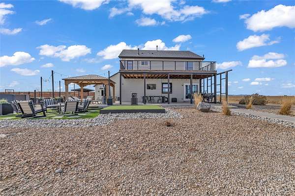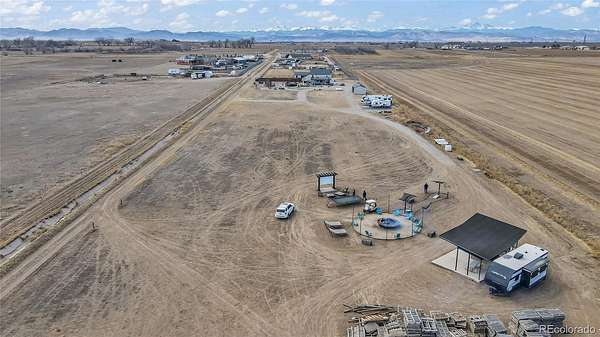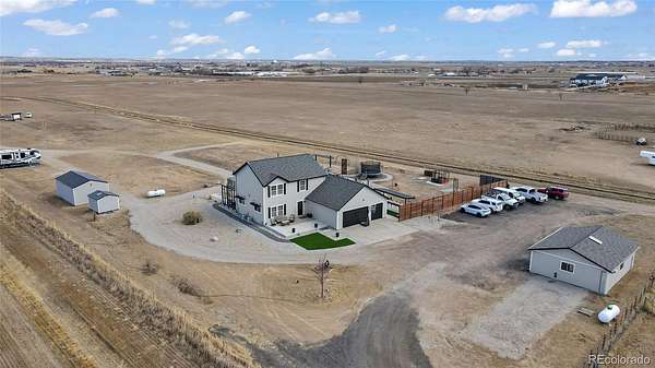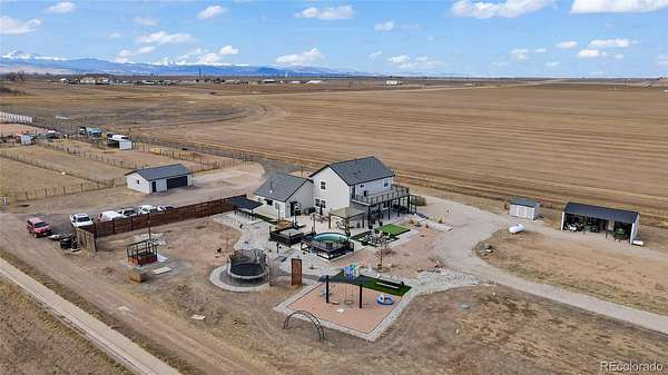 Welcome to your private 6.5-acre retreat designed for both relaxation and unforgettable gatherings. This 3-bedroom, 3-bath home features a 4-car attached garage plus a 2-car detached garage and cattle shed, offering space for vehicles, hobbies, and animals. The primary suite includes a private balcony where you can take in the wide-open views. Outside is where this property truly shines—an incredible outdoor living and entertainment area with an above-ground pool and deck, hot tub, multiple fire pits, lounge areas, outdoor movie space, and a bar setup with cornhole for endless entertaining. A rare opportunity to enjoy country living with resort-style amenities right at home. This is a must see home! The workshop has 220 power and is heated, No HOA, out side city limits in unincorporated Weld County so county taxes are cheaper, Well can accommodate large animals, less than 5 miles to the New King Sooners, restaurants and 11 miles away from Orchard Mall.