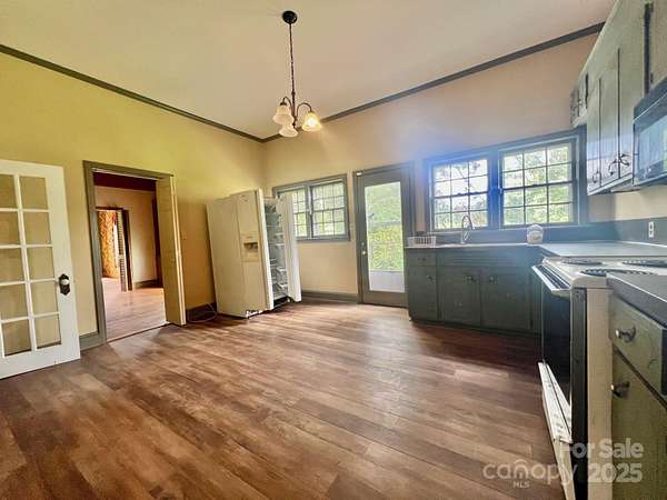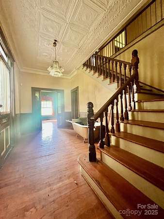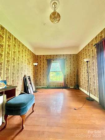 One of a kind property nestled in the foothills of the Brushy Mtns. Large 2-Story Colonial style property featuring over 3000sf. Traditional columns encase this concrete/slate covered front porch with a decorative faux balcony. As you walk in the grand entry way thru the front door, tin decorative ceilings welcome you into this sprawling unique property. The spacious kitchen would allow for an island. There is a large entertainment/den room with a fireplace and built in shelving. The tall ceilings lend a feeling of grandeur and stateliness to the rooms and also allow for natural lighting and enhancing the classic aesthetic. A separate dining room, den/or study/bedroom are also found on the main level. As you top the staircase upstairs, you will find an expansive and airy bedroom with a fireplace. 3 additional bedrooms as well as 3 full baths are found up here. There is a full, unfininshed basement allowing for extra storage space. Could also be set up for a bed and breakfast.