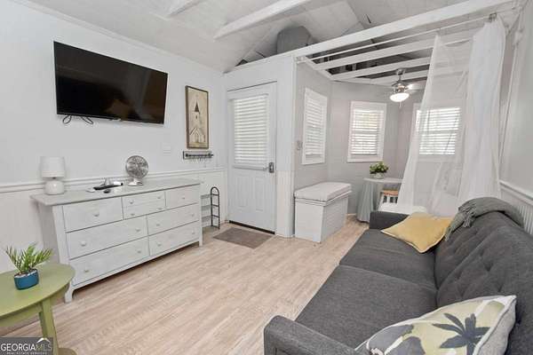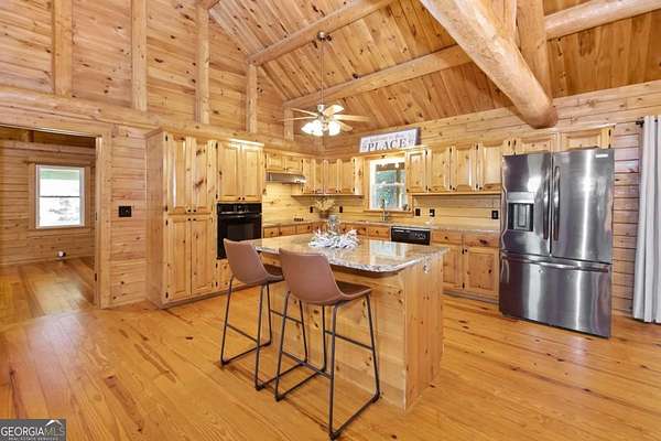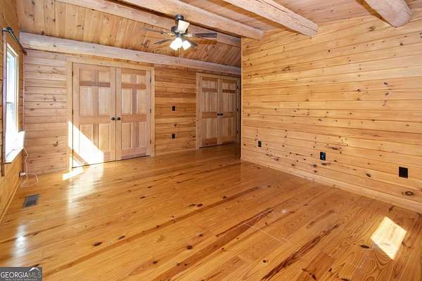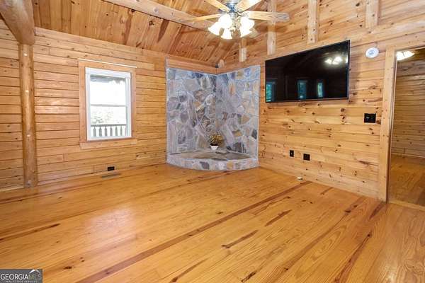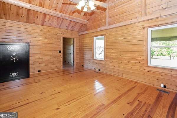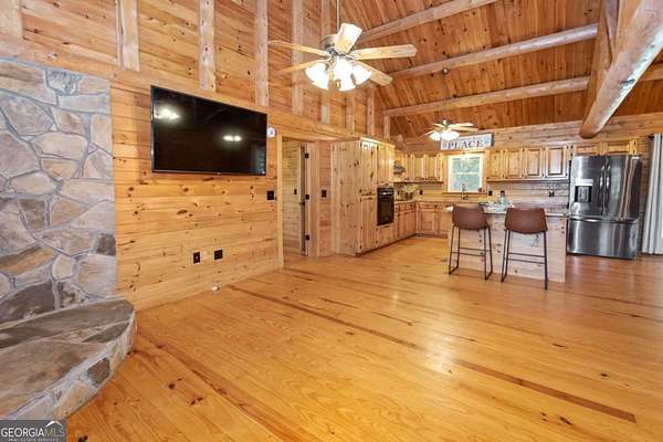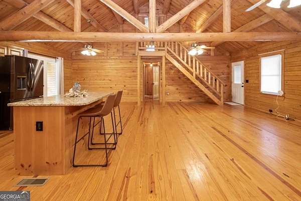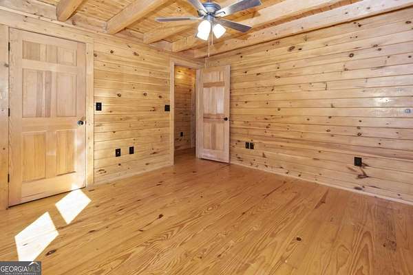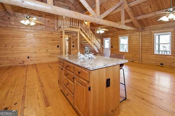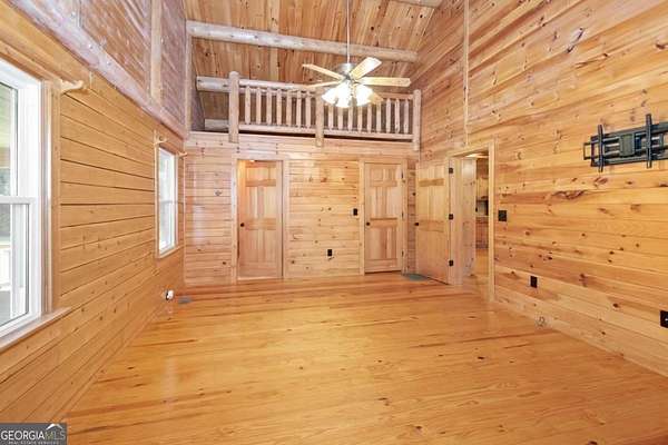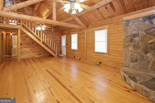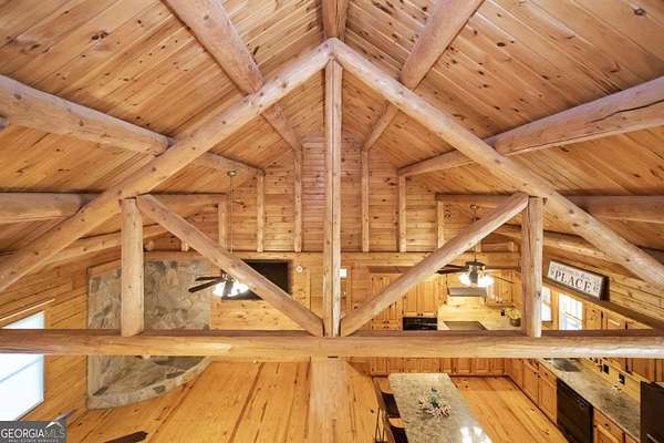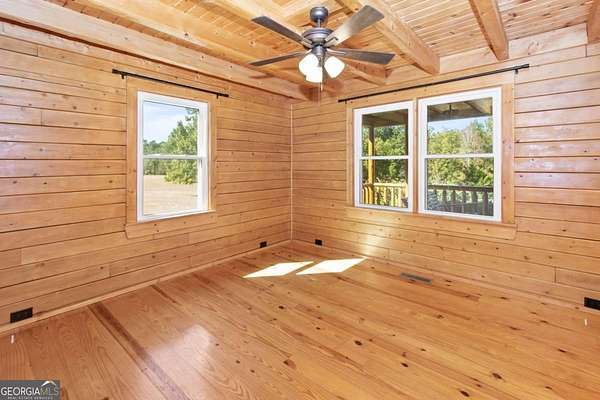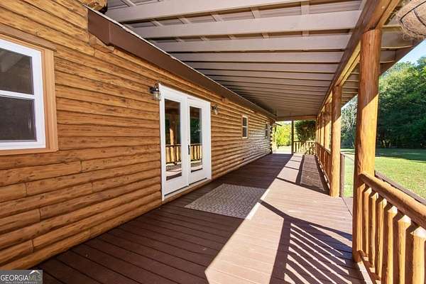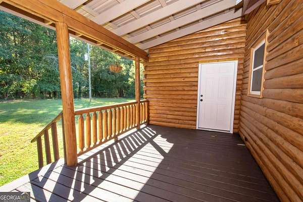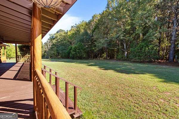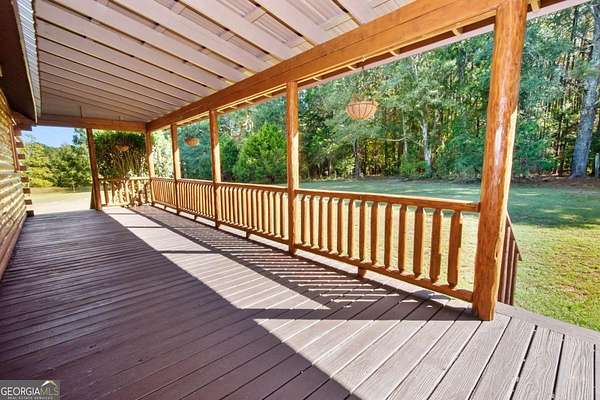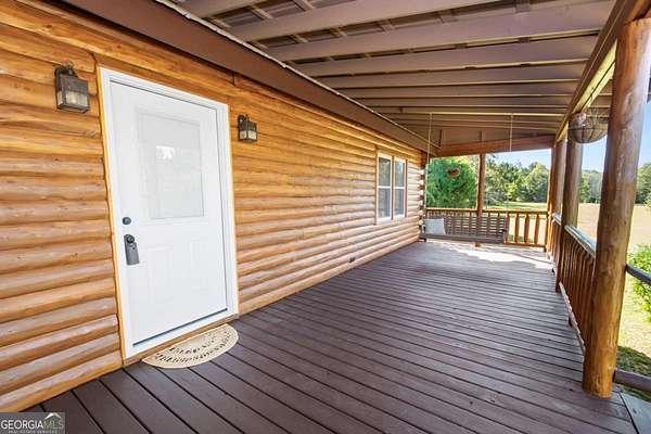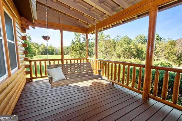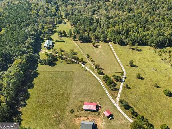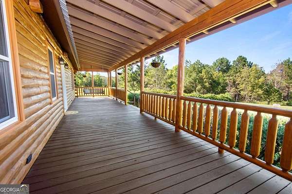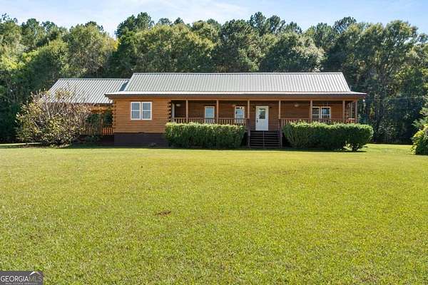 This charming, custom built log cabin is perfectly situated on 11.5 private acres and offers a peaceful retreat with modern updates throughout. A long, tree lined driveway welcomes you home as you cross over a year round creek, setting a serene tone from the moment you arrive. The land includes mature vegetation, a producing muscadine vine, and a mix of cleared acreage and fenced pasture ideal for horses, livestock, or gardening. To the side of the house, you'll find over a dozen mature pecan and walnut trees, along with persimmon trees, adding to the natural beauty and bounty of the property. Nature lovers and outdoor enthusiasts will appreciate the hunting potential and quiet surroundings, while families will love being in the highly sought after Rosemont School District. The main home has been completely updated, featuring a new HVAC system, energy efficient windows, and new exterior doors. Inside, the home offers 4 spacious bedrooms and 3 full bathrooms in a desirable split bedroom floor plan, providing added privacy for the primary suite. The open concept main living area boasts sky high ceilings and plenty of natural light. It highlights the custom built beam! The kitchen is equipped with granite countertops and flows beautifully into the living and dining spaces, creating a welcoming area for everyday living or entertaining. The primary suite is a true retreat, featuring high ceilings, a private loft, a walk-in closet, and double vanities. It also includes an attached bonus room perfect for a home office, sunroom, or nursery. A spacious laundry room adds everyday convenience, and an additional loft bedroom with a full bath upstairs makes a great space for guests or teens. Both the front and back of the home feature full length covered porches, with a porch swing ready for you to enjoy the peaceful views. Additional features include an attached two car carport and a second carport ideal for a boat or extra storage. On the property, you'll also find a detached guest house that can serve as a teen suite, in-law quarters, or even potential rental income. This unique property offers privacy, comfort, and flexibility all within a short drive to town conveniences. It's truly move in ready and waiting for you to make it your own. Call today for your private tour!