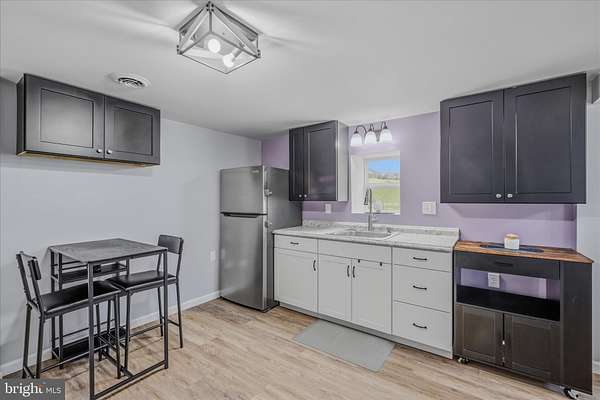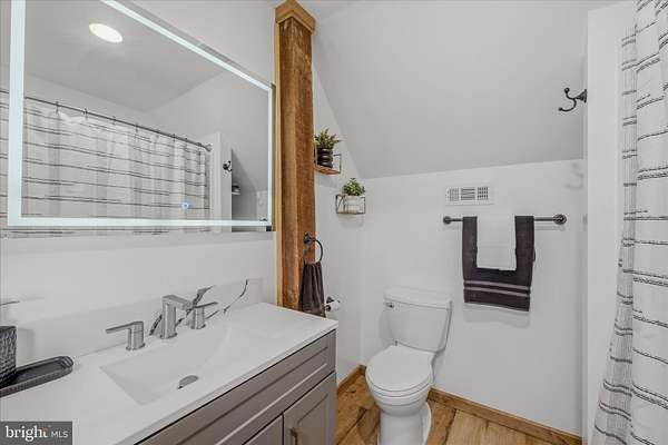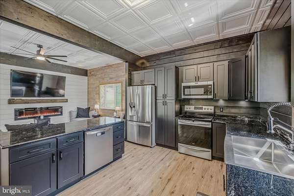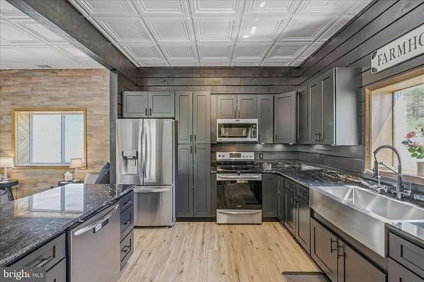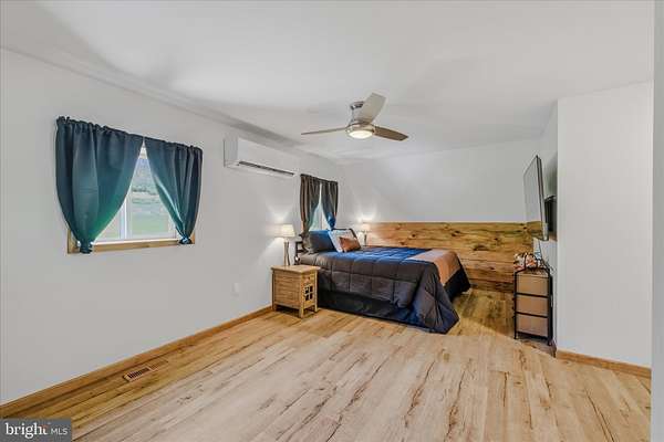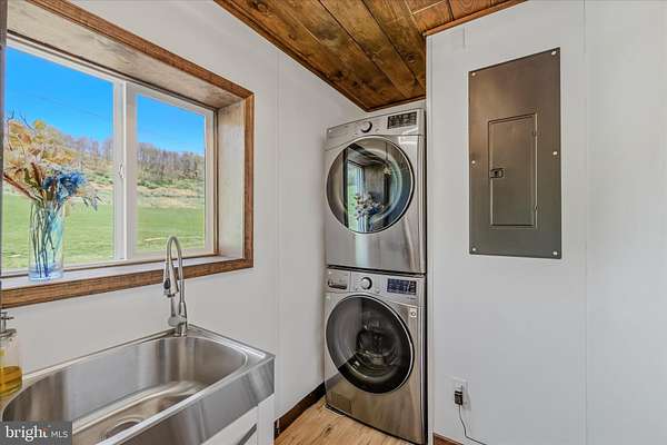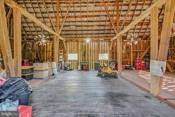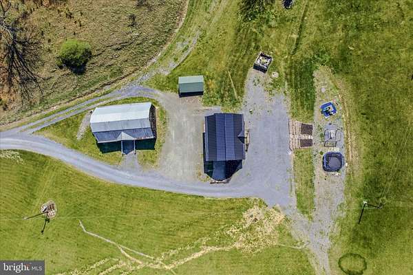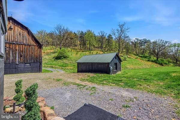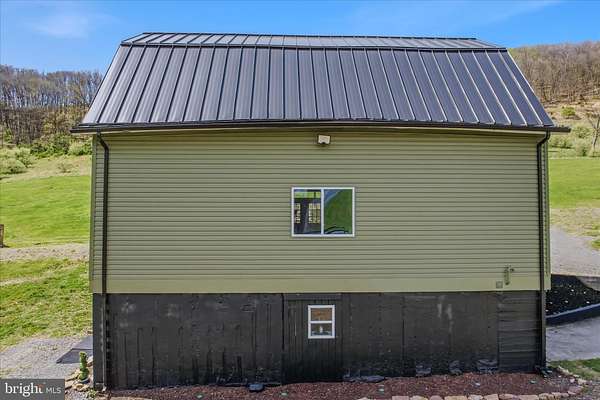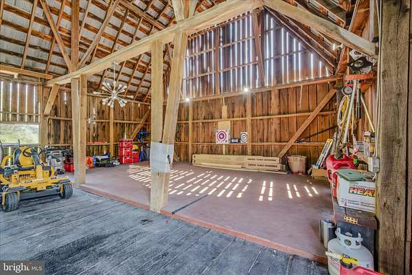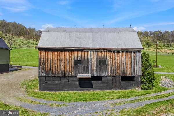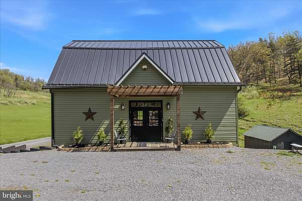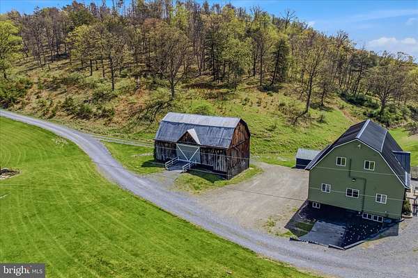 A dream home straight out of a magazine, this stunning barndominium blends a New York loft vibe with the serenity of 23+ rolling, wooded acres. Beyond its striking design, this home is rich in thoughtful amenities and upgrades. The main level features an open floor plan with a spacious bedroom, full bath, and laundry-perfect for those seeking one-level living. The kitchen showcases modern appliances, under-cabinet lighting, and LED strip lighting across the tops of the cabinets for added ambiance. In the evenings, enjoy the soft glow of custom ceiling lighting while relaxing by the electric fireplace. Upstairs, you'll find a large bedroom with ensuite bath, an additional bedroom ideal for a bonus room or office, and a hall bathroom. The fully finished basement was designed with guests in mind, offering two bedrooms, a Jack-and-Jill bath, kitchenette, and private entrance with its own mudroom/foyer. This space provides excellent privacy for visitors or potential rental opportunities. Custom woodwork is featured throughout the home-even the window sills are handcrafted. A charming built-in pet condo beneath the stairs includes its own viewing window for your furry family members. For those with allergies or respiratory sensitivities, the home includes an air filtration system and hypoallergenic drop-tile ceiling for enhanced air quality. Major updates include a newer roof (2 years), HVAC updated in 2018 and inspected/serviced in April 2026, expanded septic system with a new septic tank to accommodate a 5 bedroom home (October 2024), updated manifold and electrical panel (2024), and newly finished vinyl siding with Zip System insulation (April 2026) for improved energy efficiency. The home is also equipped with a whole-house Culligan water filtration system, with a separate reverse osmosis system providing filtered drinking water to the kitchen sink and refrigerator. Taken all the way back to the home's structural framing, the main level has been completely reimagined and rebuilt, offering the feel and quality of brand-new construction within the original footprint. Outdoors, the landscape is picturesque and inviting. Enjoy quiet mornings under the pergola, sled the rolling hills in winter, garden, or even harvest hay. The large functional barn offers storage for equipment and recreational vehicles-and has previously hosted weddings and events, offering exciting income or hosting potential. Conveniently located just 12 miles from Cumberland and I-68, a little over an hour to Winchester and I-81, just over two hours to Dulles Airport, and approximately 2.5 hours to Washington, DC.
