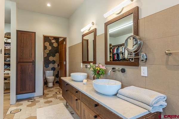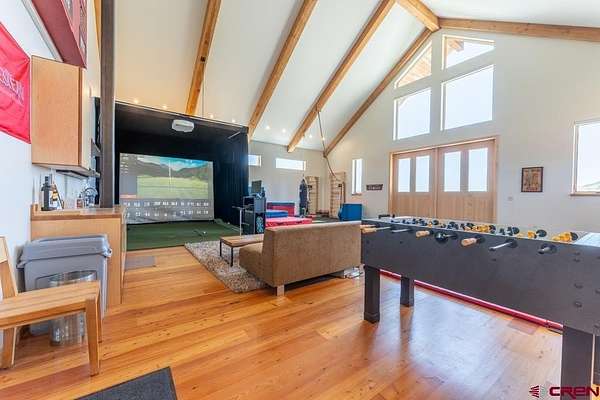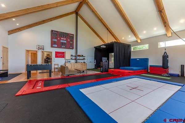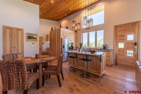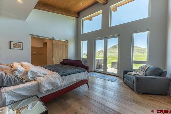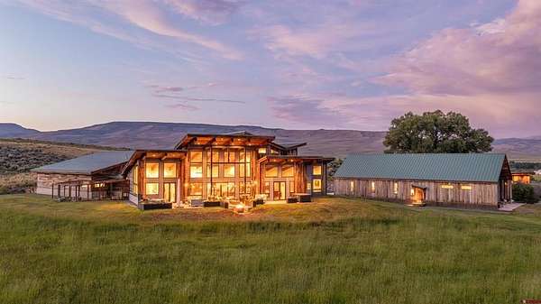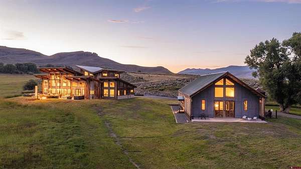 Brian Cooper, Bluebird Real Estate, LLC, C: 970-275-8022, brian@bbre1.com, www.crenmls.com: Welcome to this stunning rustic-contemporary estate on 35 acres in the exclusive Horse River Ranch subdivision, just 10 minutes from Gunnison in the scenic Ohio Creek Valley. Set against sweeping views of open meadows, this 3,750 sq ft custom-built home blends refined craftsmanship with modern design. The open-concept main living space features 22-foot ceilings, French oak wood floors, and a dramatic wall of windows that floods the living room with natural light and opens to a custom concrete patio with a built-in gas fireplace, perfect for entertaining or taking in the peaceful mountain setting.The beautifully appointed kitchen, outfitted with top-tier appliances, sits just off the living room and flows seamlessly into the dining area. Throughout the home, you'll find handmade solid wood cabinetry and doors. The laundry room features custom painted green cabinets, which leads to a spacious mudroom and an attached three-car heated garage. On the main level, the private office features a cozy gas fireplace, while the primary suite includes a sitting area, walk-in closet, and a luxurious ensuite bathroom. An additional bedroom with a private bath completes the main floor, while upstairs offers two more bedrooms, a full bath, and a loft-style seating area overlooking the living space below.The home's exterior showcases a striking blend of reclaimed barn wood, corrugated metal, and concrete board, an authentic take on rustic modern architecture. A newly built guest house echoes the main home's style with open living spaces, two bedrooms, two bathrooms, laundry room, and a one-car heated garage.An impressive 3,600 sq ft multi-use building offers a workshop with a garage door, loft storage, and a full gym complete with bathroom, refrigerator, dishwasher, in-ground trampoline, tumble track, and a custom golf simulator. The large gym area can easily be converted into additional workspace or additional living area. Oversized barn doors open the gym to the meadow and a fully outfitted horse corral with power and water.Residents of the gated Horse River Ranch community enjoy equestrian amenities, private fishing rights, and direct access to thousands of acres of adjacent BLM land. This one-of-a-kind property offers refined rural living with space to roam, recreate, and relax.