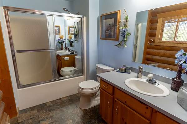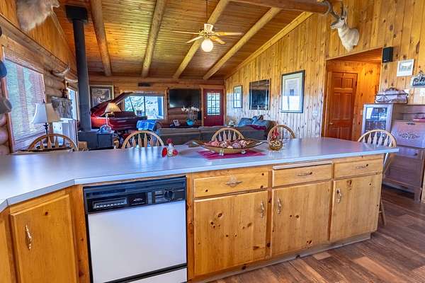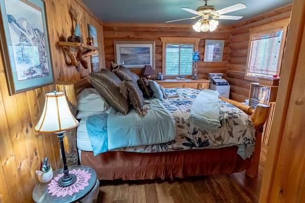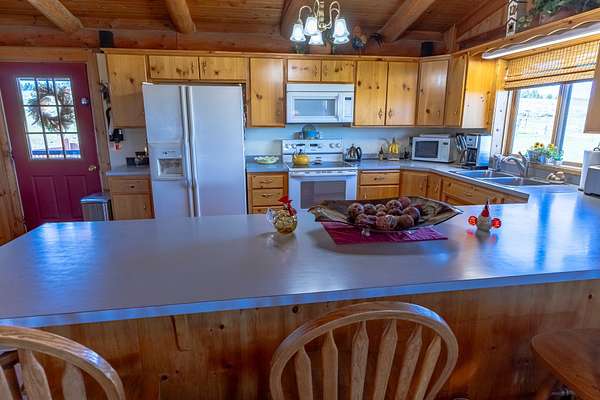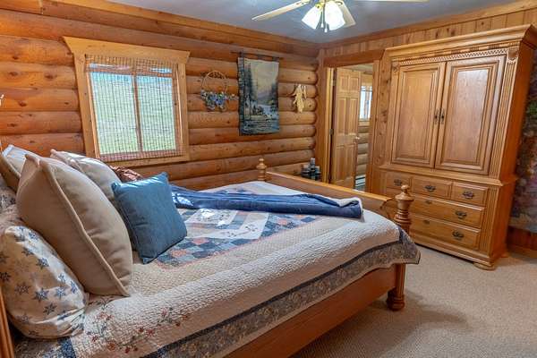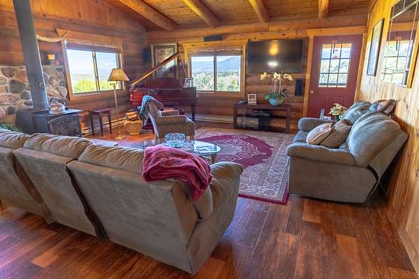 Welcome to your 20-acre oasis, offering privacy near the end of the road. This beautiful log home with vaulted ceilings features 3 spacious bedrooms and 2 bathrooms on the main level, along with a 1-bedroom (non-conforming) suite with a private entrance in the daylight basement, perfect for guests or as an in-law suite. The oversized tuck-under garage has two floor drains & is heated for your convenience. The views are breathtaking, and the tranquil surroundings will make it hard to leave! The entire property is fenced and has two pastures. The barn is a generous size, with ample room for expansion if needed. The tack-room is even heated! There is also a well-established greenhouse for your gardening projects. Additionally, a natural spring runs from April to August nearly every year. The well-maintained county road ensures easy access to town, which is just 20 minutes away from Townsend. Don't miss out on this piece of paradise!