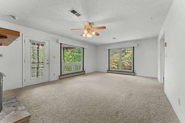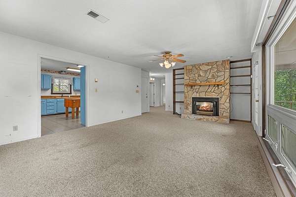This lovely home sits on a 2.3 +/- acre lot overlooking a huge pond on this property and has short range mountain views you can enjoy from the oversized windows in the living room or outside on the covered back porch. Autumn is going to be spectacular here! Take a walk around this property and you can tell this home has been well maintained and is move in ready. The kitchen is spacious and has lots of cabinets to house all your cooking gadgets. There is a brick area in the corner of the dining room that once hosted a wood-burning stove. Can you imagine how cozy that must have been on a winter day? There are 2 bedrooms and 2 full baths on the main level and 1 bedroom and a full bath (that is ready for a remodel) in the basement. The basement also has a gas wall heater, a 1 car garage, a huge laundry room and a workshop area that is perfect as-is for hobbies or just to use for additional storage. There is indoor and an outdoor access to the basement. Enjoy this home as it is or update it yourself with all the newest styles and enjoy it for years to come. Either way, it is a MUST SEE so schedule a showing with your favorite real estate broker today!