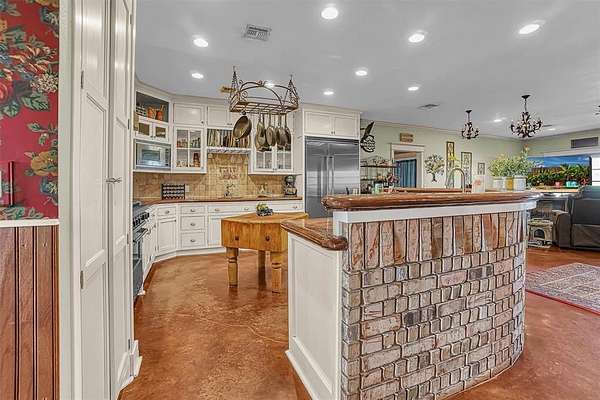 If you are looking for land to roam & a place to call home, this 80 acres MOL with a beautiful 4673sf home MOL is the perfect place to call your own. It is tucked away on a private road offering privacy & seclusion but just minutes from town. The home was custom built in 2006 with commercial built standards, steel framed, metal, radiant heat back decking with class 4 -high impact shingles recently replaced. The oversized garage accommodates 2 cars with extra depth added for those longer vehicles. The generous sized bedrooms each have their own private bathrooms, a half bath conveniently located just off the entry/mudroom with an extra study with built-ins & a bonus room upstairs that can be used as another bedroom if needed. The primary bedroom has a built-in aquarium & access to the back patio as well as a built-in sauna in the primary bathroom. The open concept kitchen offers concrete stained countertops, Viking Appliances including a commercial sized refrigerator, 2 dishwashers, a chef's double oven with a griddle, a warmer above, a pot filler, a built-in fryer & an extra warmer to make it so easy to entertain like a Pro. The fireplace has a pizza oven that just needs the venting installed, a central vac system for easy cleaning & the floors are equipped with the plumbing set up to have heated floors throughout. There is also the infrastructure for a fiberglass, in-ground pool already there ready to install including the pump, filter & already wired into the electrical panel. If the home wasn't enough, this property also has a 60x40 (mol) shop with spray foam insulation, electricity & propane infrared tube heater overhead. Just off the main shop is an additional 24x40 (mol) shop office with its own bathroom, potential kitchen area & equipped with electricity and heat. Other misc. things on property is a 5x7 cellar just outside the shop, 8 security cameras installed, 4 dug wells, 2 grain bins, 2 smaller sheds & a fire hydrant on the property as well.