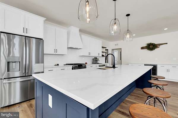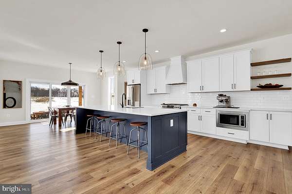 3471 Bullfrog Rd offers a rare combination of privacy, views, and modern functionality on 3.05 acres in the Maryland countryside. Surrounded in part by preserved farmland and overlooking nearby mountain ridges, the property enjoys expansive, peaceful views that feel both open and protected. Designed in a refined Craftsman-contemporary style, the main level is centered around a dramatic great room with soaring ceilings and large windows that frame the surrounding landscape. The kitchen is built for both everyday living and entertaining, featuring an oversized island, premium appliances, a separate prep kitchen/ scullery, and a beverage refrigerator with dedicated wine storage. A main-level bedroom and full bath offer flexibility for guests or multigenerational living. The main floor also includes a private home office, ideal for remote work. Upstairs, the home features a spacious primary suite with a well-appointed bath, along with additional bedrooms and thoughtfully designed living space. The finished walk-out lower level provides flexible space for recreation, media, or guests and includes an additional office or workspace, ideal for a second remote professional or private study. Outdoor living is designed for gathering and relaxation, with terraces overlooking open fields and mountain views, plus a firepit area perfect for evenings under the stars. Additional features include high-efficiency HVAC, tankless water heater, washer and dryer, and a wine refrigerator. Located near Route 15, the property offers convenient access to Frederick, Baltimore, and Washington, D.C., while still providing the quiet setting of rural Maryland. Outdoor recreation is close by, including Liberty Mountain Resort, Carroll Valley Golf Course, and historic Gettysburg. A private retreat that blends space, functionality, and scenic countryside views.