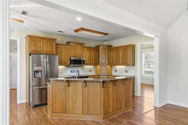 - Electric Cooktop, Electric Oven, Gas Water Heater, Microwave, Plumbed For Ice Maker, Refrigerator