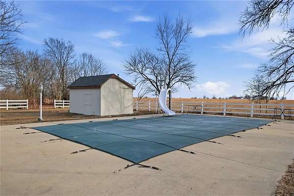This home is going to melt your heart! The charm will sweep you away! Bring your imagination and let the dreams begin with your continued updates. Sitting on 20 rolling acres, this 4 bed/2.5 bath 1900s farmhouse welcomes you inside to solid surface countertops, a sunroom that looks over the best views, 2 very spacious family rooms and the best yet, a gorgeous formal dining room with a fireplace! One of the bedrooms has its own sitting area with a dreamy balcony to the outside! This home was added onto in 2000 and the in ground pool was added in 2002. This beautiful setting includes a previous baseball field, a basketball court and a gorgeous in ground swimming pool. Bring your picnic baskets! The expansive windows from your sunroom overlook the gorgeous treed backyard so you can watch all the activities. Included as well are 2 barns, one with a concrete floor and electric, the other is set up for cattle. 20 ACRES for livestock, horses, hunting or dreaming! BRAND NEW Roof and Septic! Prepare to be swept away! Property lines are of all 40 acres that could be available. Please ask if interested.