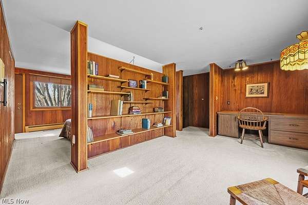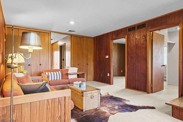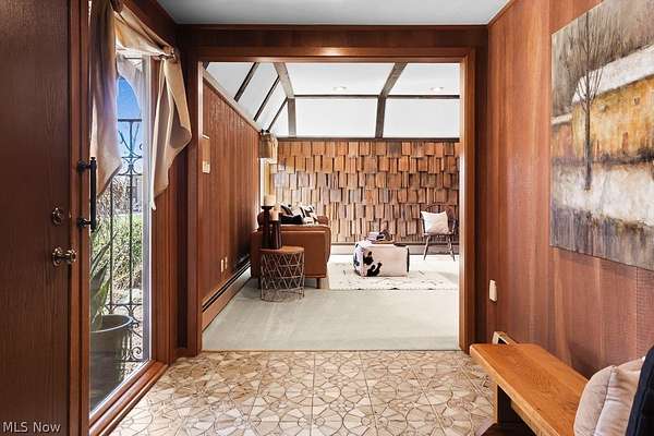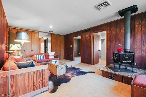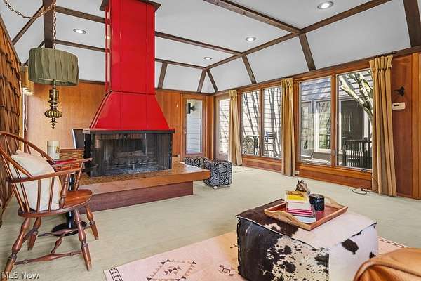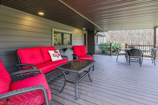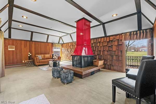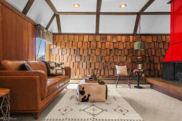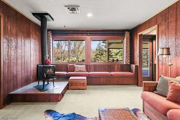 This rare, one of a kind, 4 bedroom, 2.5 bath contemporary Medina home is set on 11.30 acres, ideally located just a few minutes from SR 3 & I-71 offering a quick commute to downtown Cleveland, Akron, or the airport all while enjoying a tranquil or rural lifestyle. This versatile home site is perfect for so many lifestyles! There is a barn with concrete floor that once housed horse stables perfect for a hobby farmer, in addition to the 2 car attached garage, there are 2 spacious detached 4 car garages with multiple garage doors offering 10+ parking spaces for car enthusiasts, shop space for business owners, or whatever you may need! The home is nestled on the lot for maximum privacy, while maintaining maximum use of the beautiful landscape with a beautiful pond which appeals to gardeners and nature enthusiasts alike. Step inside to an inviting foyer and discover a wonderful mix of Mid Century Modern and Frank Lloyd Wright style. The spacious Living room has a contemporary wood burning fireplace focal point with a conversation area. The centrally located kitchen features newer appliances, ample prep space, granite counters and counter seating. The adjoining dining area offers access to the atrium in the center of the home or the covered deck with gorgeous views of the pond. The family room features a wood burning stove and built in seating. There are three bedrooms and a full bath located on this side of the of the home offering first floor living options. Upstairs you will find a spacious primary suite with full bath & sauna, along with a sitting room or office, and walk out balcony with views of the park like landscape. Downstairs the basement offers a light filled finished rec room with built ins, and is attached to a utility room with additional storage space. Hurry to see this one of a kind home, in an amazing location, as these types of homes with acreage rarely come to market. This is truly a special place ready for it's next chapter to begin.