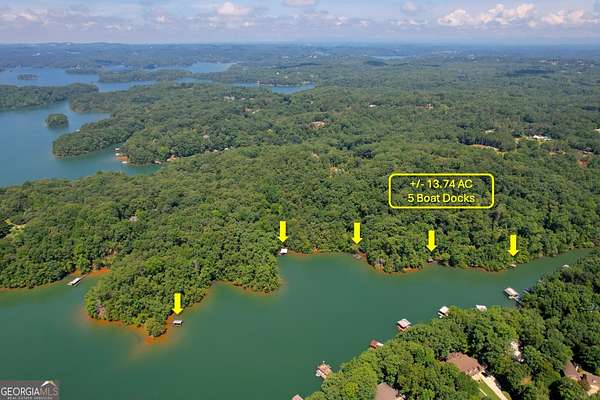 PROPERTY OVERVIEW Norton Commercial is proud to present this is a rare opportunity to own +/- 13.74 acres directly on Lake Lanier-ideal for a private estate or the development of 6 individual homesites. The property offers over 1,900 feet of road frontage on Cook Road and features direct lake access with five existing docks currently in the process of renewal, adding significant value. Positioned on one of the highest elevation points on Lake Lanier (approx. 1,246 ft), the land offers sweeping views rarely found on the lake. The topography is natural to the area-rolling to steep-and utilities are already in place, including public water (septic required). A 2,400 SF existing structure currently serves as an event space. Properties of this size and quality on Lanier are few and far between, making this a one-of-a-kind tract with strong potential for a custom lakeside retreat or residential development. LOCATION OVERVIEW This exclusive property is approximately 5 radial miles (15 minutes) from Gainesville, 8 radial miles (18 minutes) to GA-400, and 15 radial miles (about 28 minutes) to Cumming. The nearest commercial corridor is just a short drive away along Dawsonville Highway in western Gainesville, one of the area's most active retail and development hubs. This corridor includes a Publix shopping center, Home Depot, national chain restaurants, local dining options, residential developments, and a variety of other businesses. Chestatee High School, Brenau University, and the medical hub of Northeast Georgia Health Systems are all located within a 15-minute drive. Situated directly on Lake Lanier in Hall County, this property offers a unique opportunity. OFFERING SUMMARY Sale Price: $2,999,000 Price / Acre: $218,268 Lot Size: 13.74 Acres | Subdivided into 6 Lots Zoning: V-C & AR-1 Road Frontage: +/- 1,900' - Cook Road Utilities: All Included - Will Require Septic Boat Docks: 5 Single Slip Docks School Districts: Sardis ES, Chestatee MS, Chestatee HS