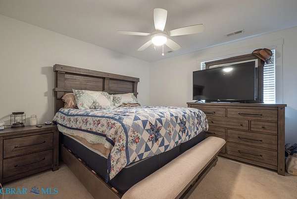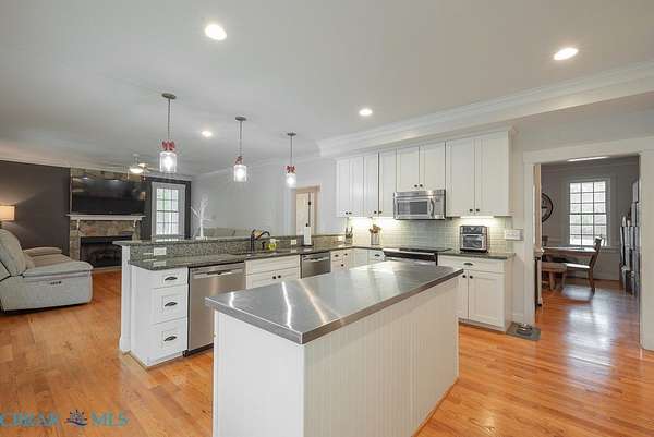 - Bedroom On Main Level, Ceiling Fans, Fireplace, Granite Counters, High Ceilings, Kitchen Island, Walk In Closets