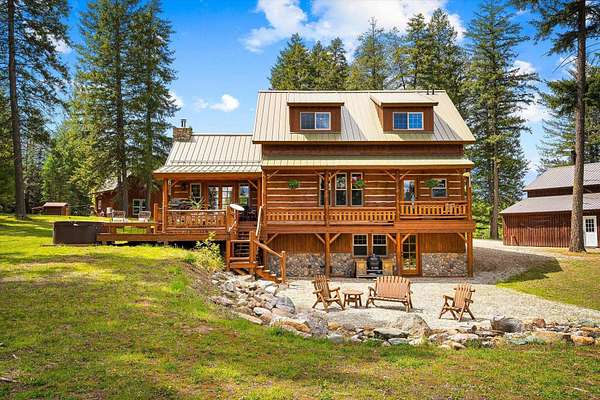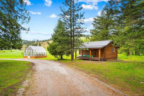 Discover a rare opportunity on 20 pristine acres overlooking Waitts Lake! The meticulously crafted 2,805 sq ft main residence features 2-inch slab log siding, a premium metal roof, and energy-efficient Milgard windows. The high-end finishes shine w/ custom Hard Maple & Knotty Cherry cabinetry, rich Douglas fir flooring, & thoughtfully designed living spaces that create a warm, inviting atmosphere. The property includes a charming 750 sq ft cabin/ADU for guests or rental income, a 40x50 garage w/finished loft, RV bay and EV charger, log shop, gothic arch greenhouse, and a lighted log gazebo-ideal for relaxing or entertaining. Access to outdoor adventure with nearby golf, skiing, hiking and world class fishing on Waitts Lake. A year-round creek, high-producing well, and serene natural setting complete this special property. Perfect as a private retreat w/ added income potential from rentals or seasonal use - the possibilities are endless.