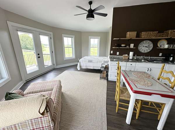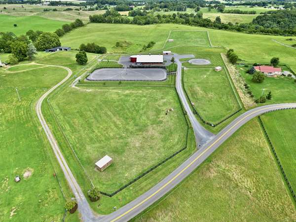 A rare opportunity to own 10+/- scenic acres just minutes from historic downtown Lewisburg, this exceptional property offers a blend of peaceful country living and premier equestrian amenities-with the added potential to build your dream home in a breathtaking setting. With long-range mountain views, a gated entrance, and black board fencing, the land is ready for a custom residence surrounded by rolling pastures, sunrise vistas, and unforgettable sunsets. Just minutes away, downtown Lewisburg offers a vibrant mix of local shops, restaurants, and year-round community events. Attached to the main barn is a beautifully finished two-story 21'x21' living space that adds comfort and flexibility to the property. Additional space on 2nd level to finish as a perfect ''Barndominium'' The main level includes a kitchen and open meeting or living area, while the upper level offers a bedroom with views of the pasture, a kitchenette, and a fully tiled bathroomperfect as guest quarters, a barn office, or a stylish place to stay while building your future home. The barn itself is a renovated 70'x90' structure designed with thoughtful detail for both horse and handler. It features 20 rubber-matted stalls with sliding doors, mounted fans, overhead lighting, an automated fly spray system, cribbing protection, 12 tack lockers, laundry, two restrooms, a secure grain room, and ample workspace. Outside, three fenced pastures include run-in sheds and automatic waterers, plus a dry lot and smaller paddocks ideal for horses with special needs. For training and exercise, a 60' lunging circle and 240'x125' riding arena with 9" of crusher run footing are ready to go. A 20'x40' covered equipment shed and generous parking for approximately 40 vehicles complete the property. Whether you're looking for a private estate, a working horse property, or the perfect place to build your dream home while enjoying an equestrian lifestyle, this stunning property offers beauty, functionality, and convenience in one rare package.