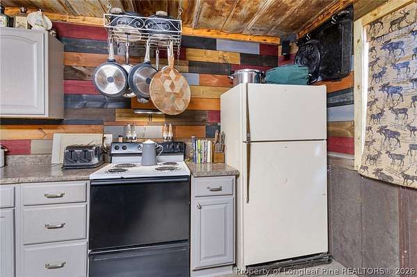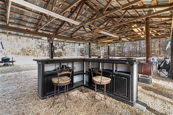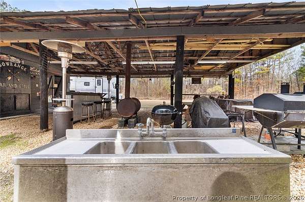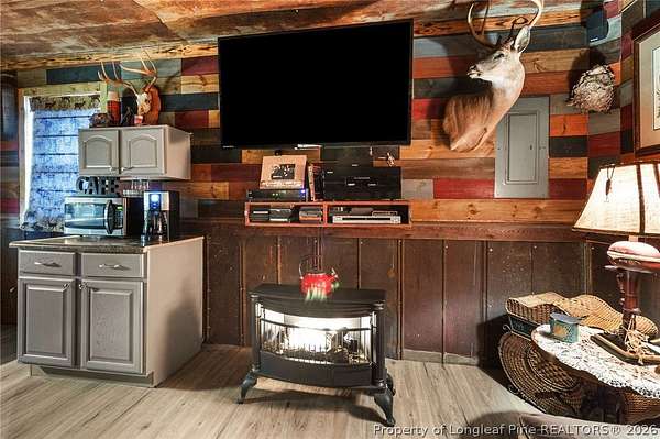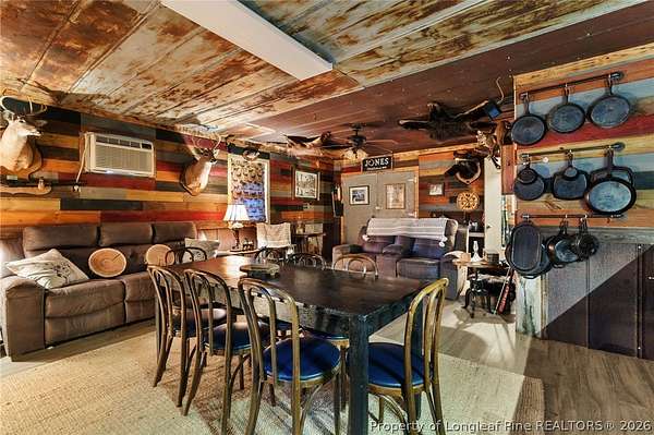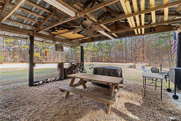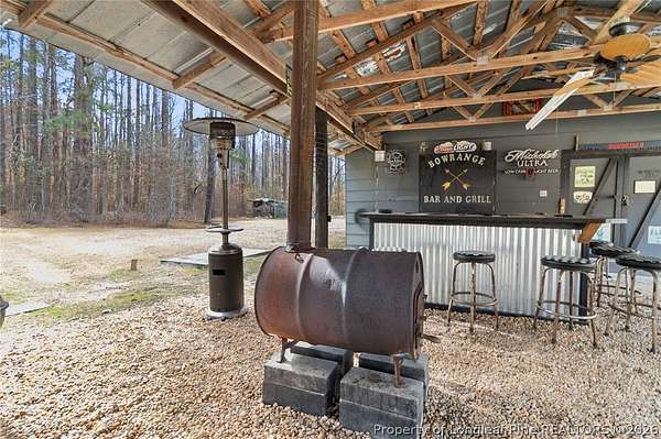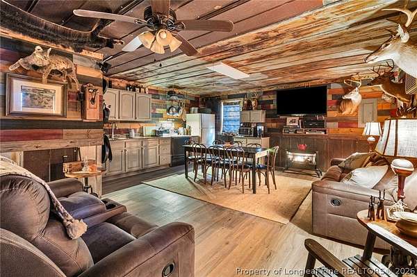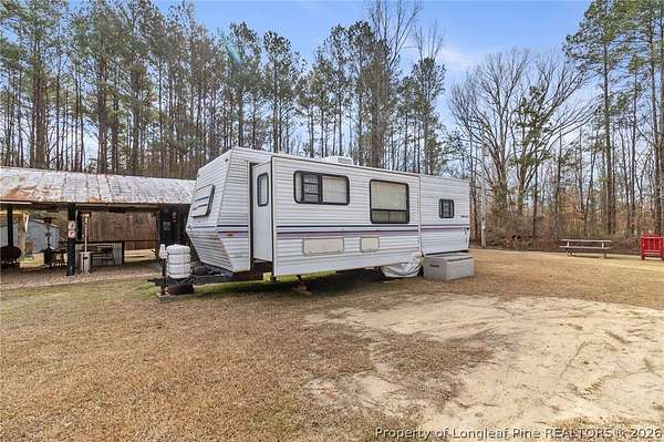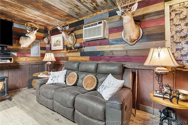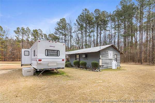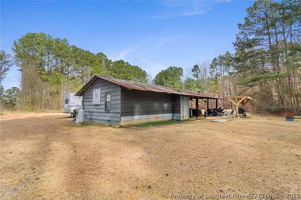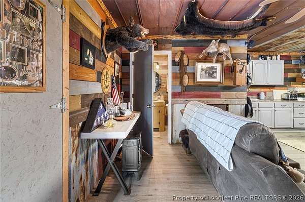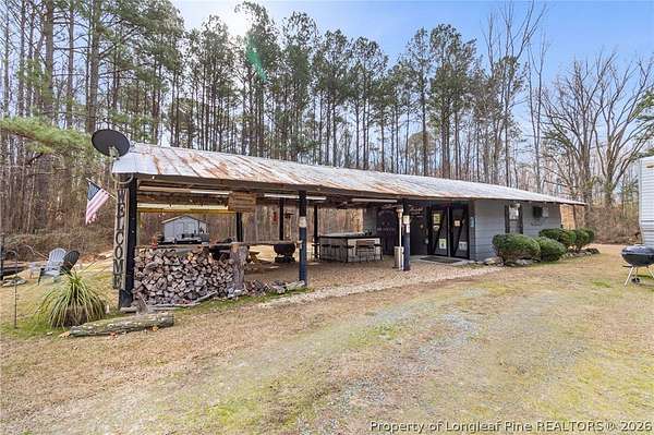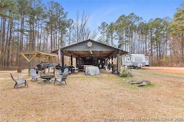 Just outside the Fayetteville city limits, this remarkable 7+ acre Eastover retreat offers the rare balance of convenience and true escape. Only minutes from I-95 and I-295, yet far enough away to leave the hustle and bustle behind, this property feels like a place where time slows down and memories are made. A long, tree-lined private drive leads to a peaceful landscape featuring over two cleared acres of lush grass-an ideal setting for a future homesite-with the remaining acreage beautifully wooded and rich with wildlife including deer, foxes, rabbits, squirrels, raccoons, turkeys and more. A stocked pond with bass and brim adds to the natural charm and invites quiet mornings and unhurried afternoons outdoors. At the heart of the property is a heated, plumbed, and powered cabin-style retreat with a full kitchen and bathroom. Designed for gathering and enjoying the outdoors, it features a large covered overhang with a bar, multiple grilling areas, and a dedicated game-processing station complete with a deer rack and wash sink-thoughtfully set up for those who truly appreciate time spent outside. A travel trailer conveys with the property, providing sleeping accommodations and flexibility, and the entire property is being sold fully furnished, making it easy to enjoy immediately while planning what comes next. This is a place where kids put down their screens, friendships are built around campfires, fishing poles, and four-wheelers, and adults reconnect with what matters-fresh air, laughter, and unstructured time together. Whether enjoyed as a private weekend escape or as the beginning of a long-term vision to build a home surrounded by land, privacy, and nature, this property offers the freedom to grow into whatever season of life comes next. When the rain rolls in, there's nothing better than turning on the gas fireplace, listening to raindrops hit the metal roof, and drifting into the kind of rest only a place like this can provide. This is more than land-it's a lifestyle, and it truly must be experienced in person to be fully appreciated.