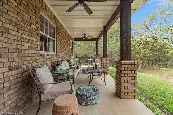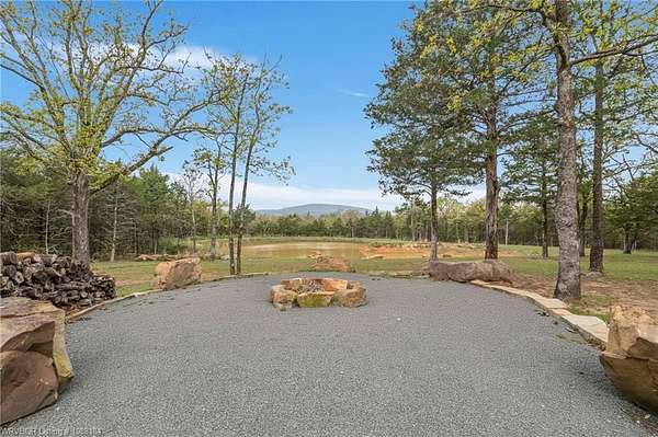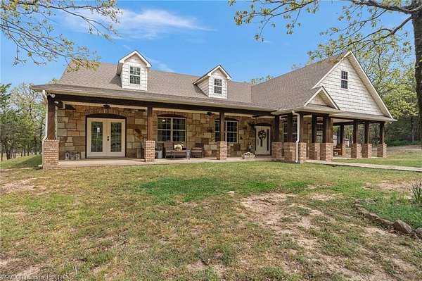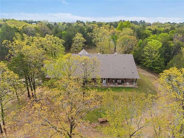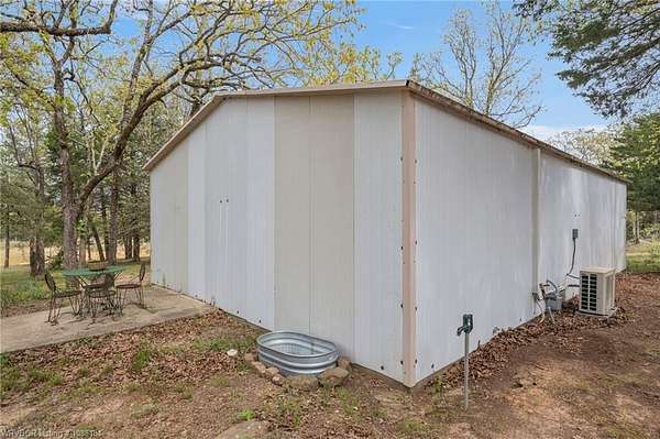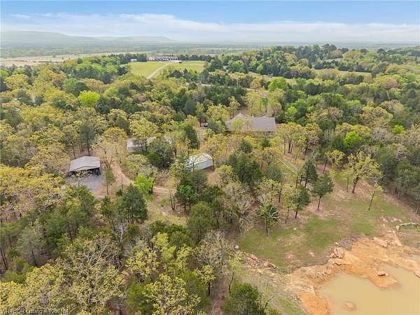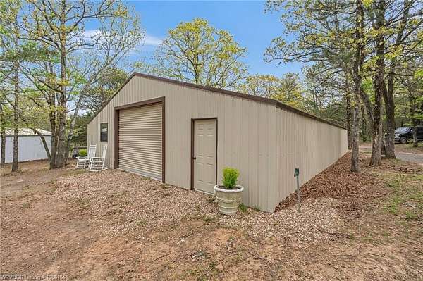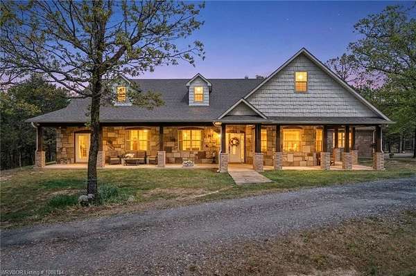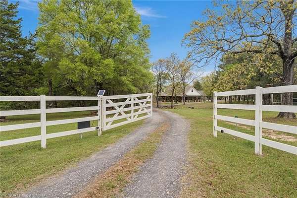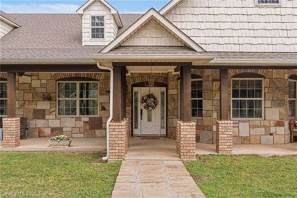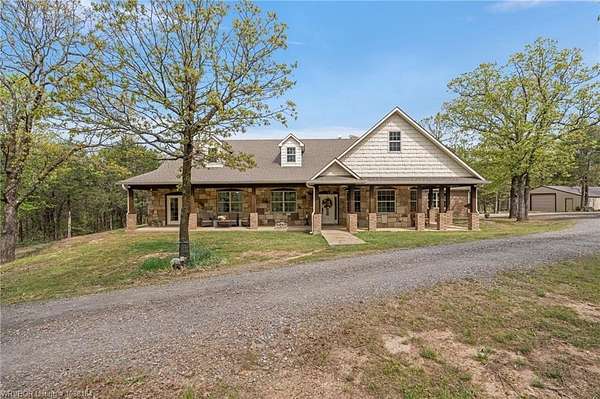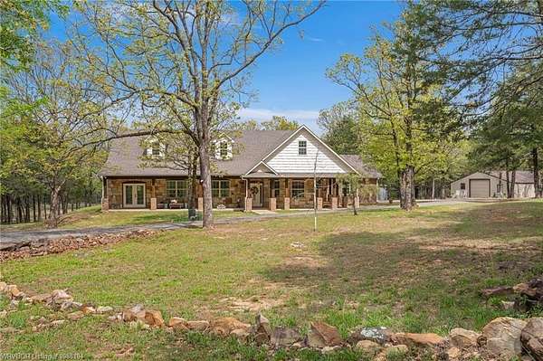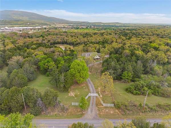 Experience refined country living on 12 private acres with an additional 8 acres available separately, just minutes from Poteau. This exceptional 3 bedroom, 2.5 bath home with office or hobby room blends high-end design with everyday comfort, set behind an electric gated entry and cross-fenced for animals. Inside, the thoughtfully designed layout features a spacious living room with gas log fireplace flowing into the formal dining area. The eat-in kitchen is a true showpiece with a dual fuel range with vent hood, column refrigerator/freezer, built-in ice maker, large island, pull-out drawers, and walk-in pantry. The breakfast room features a built-in buffet with glass-front upper cabinets. Laundry connects to both the kitchen and primary suite. Designer lighting, hardwood and travertine flooring throughout. The primary suite offers a private retreat with sitting area, French doors to the porch, and a spa-like bath with jetted tub, dual-head shower, and heated floors. The walk-in closet is off the bedroom, separate from the bath. A safe room off the primary suite provides additional storage and peace of mind. Step outside to covered front and back porches, stone fire pit, and a scenic walkway leading to a private stocked pond. Frequent wildlife enhances the peaceful setting. The property includes a 37x60 shop with new electric panel, roll-up and walk-through doors, and 200 amp service. A second 25x40 shop includes 100 amp service, a 2-ton mini split, and durable 30-year roof coating-ideal for guest house or mother-in-law suite. A 30x30 equipment shed with rock pad offers additional storage. Attached oversized garage included. Near two golf courses and less than 30 minutes to Lake Wister, Cedar Lake, and Ouachita National Forest for fishing, hunting, hiking, and 4-wheeling. Approximately 35 minutes to Fort Smith. Enjoy evenings by the pond, mornings on the porch, and the space and privacy this property offers-country living with convenience.
